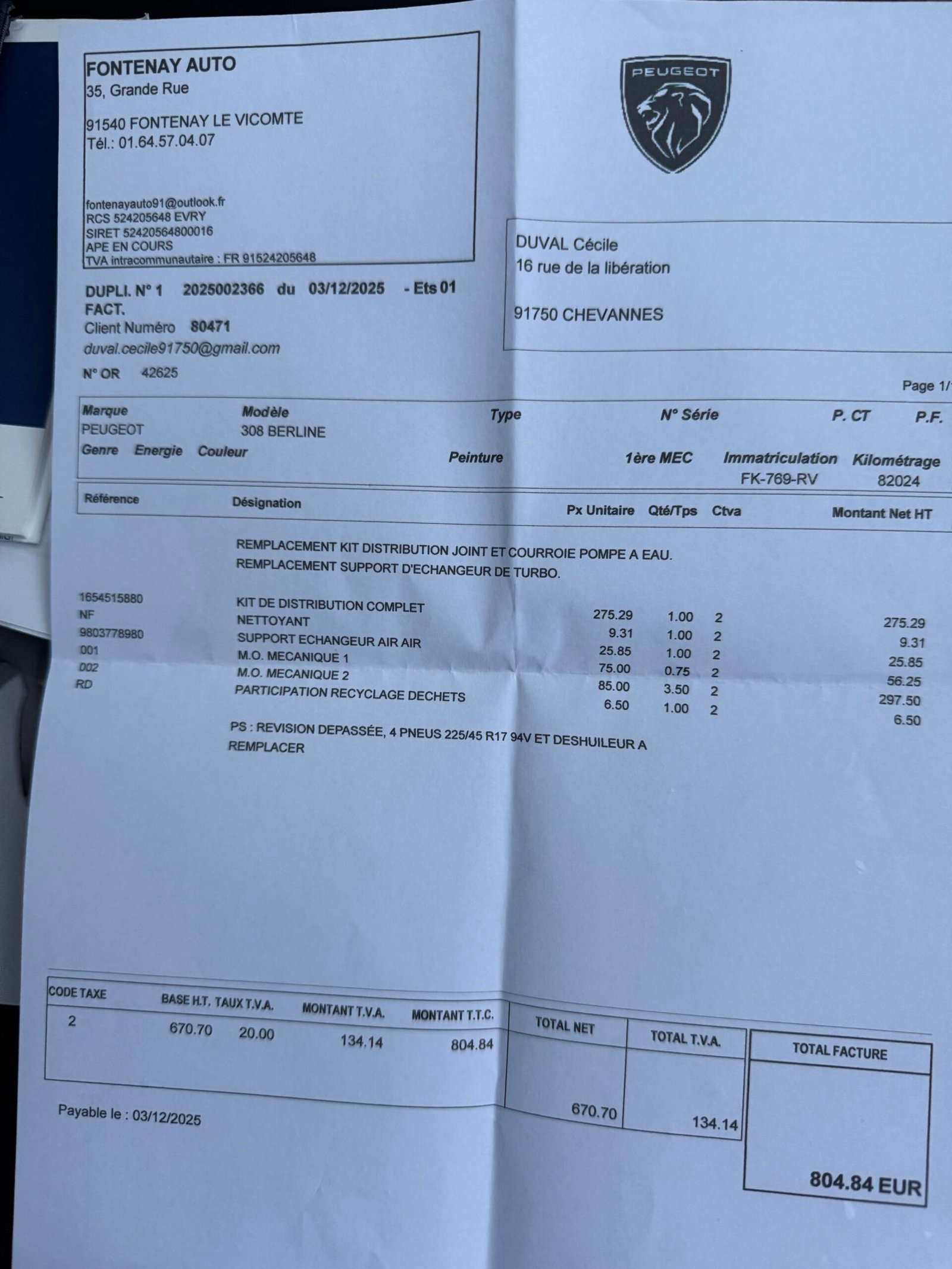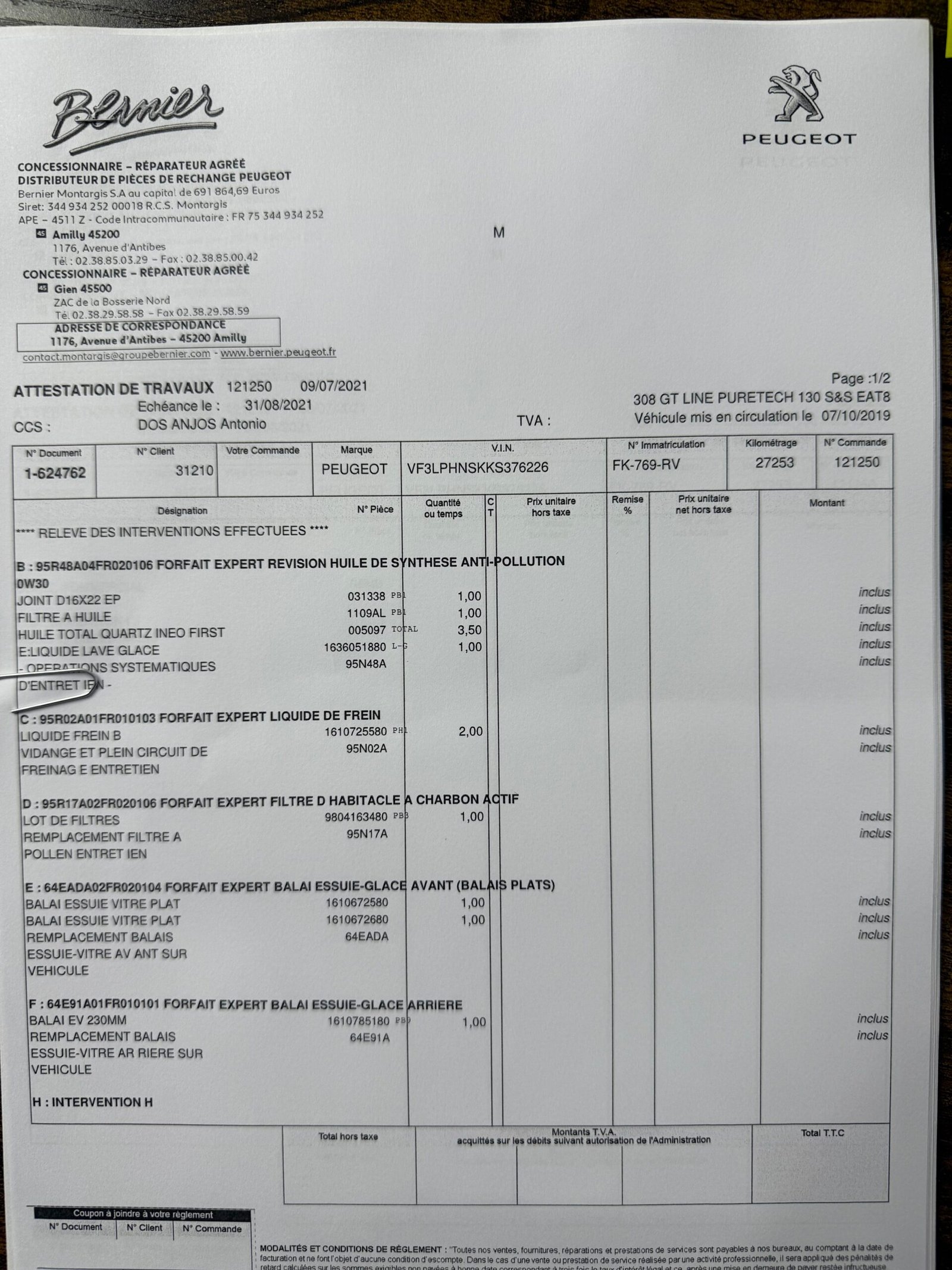 PEUGEOT 308 (II) phase 2 1.2 PureTech EAT8 130 ch finition « GT Line » (DISTRIBUTION NEUVE)