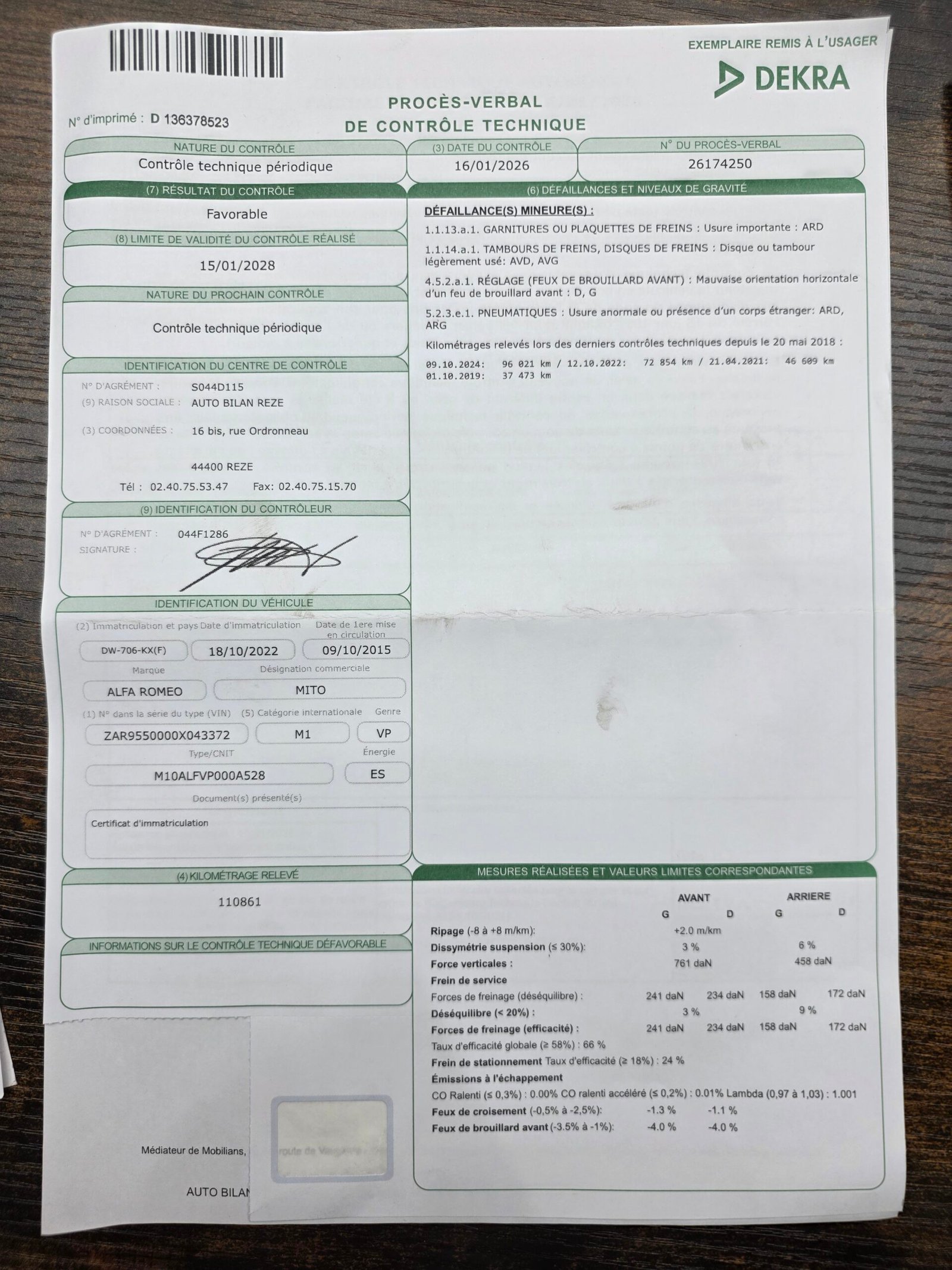 • Contrôle technique moins de 6 mois
