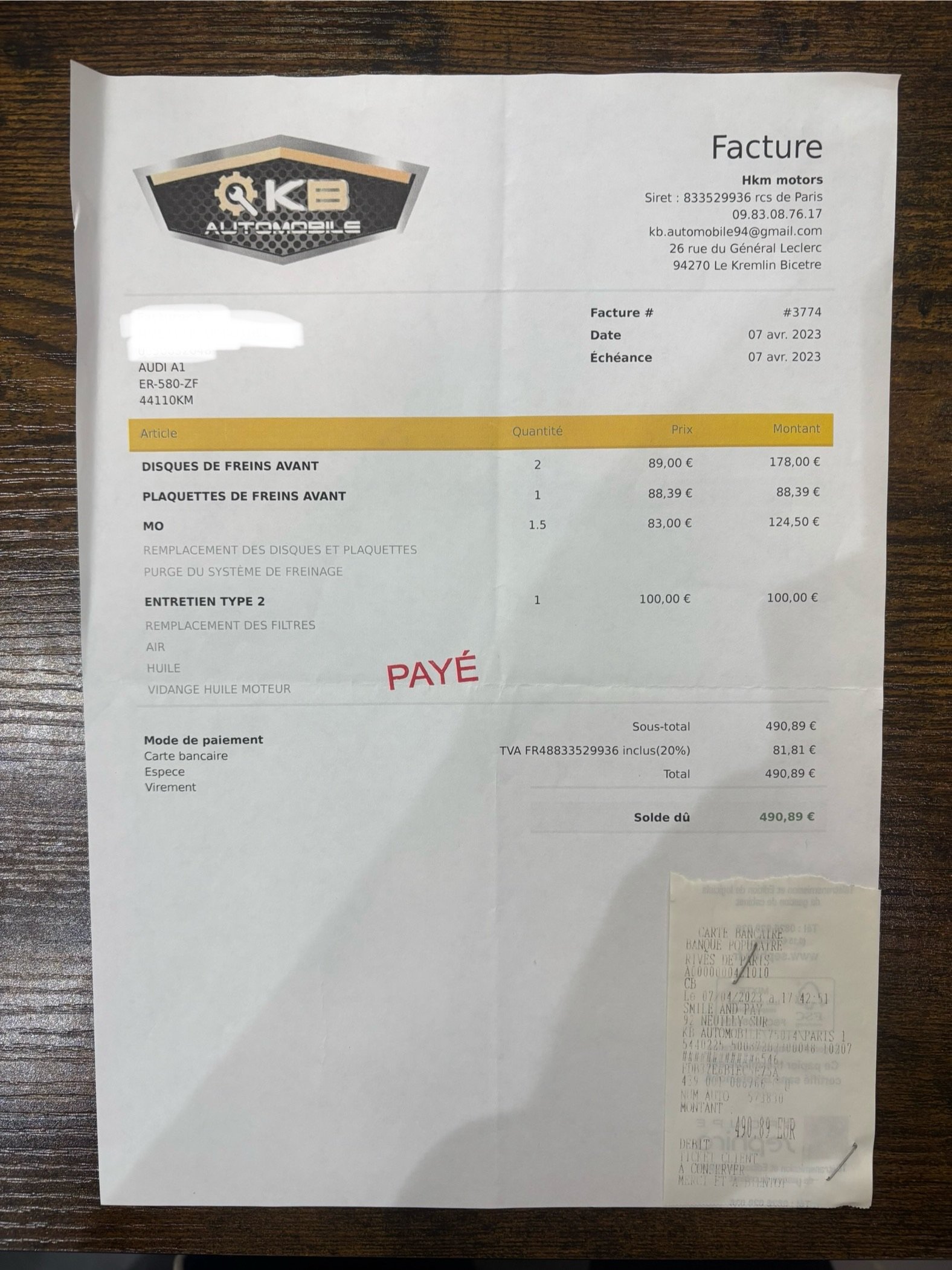 carnet d’entretien et factures disponibles.
