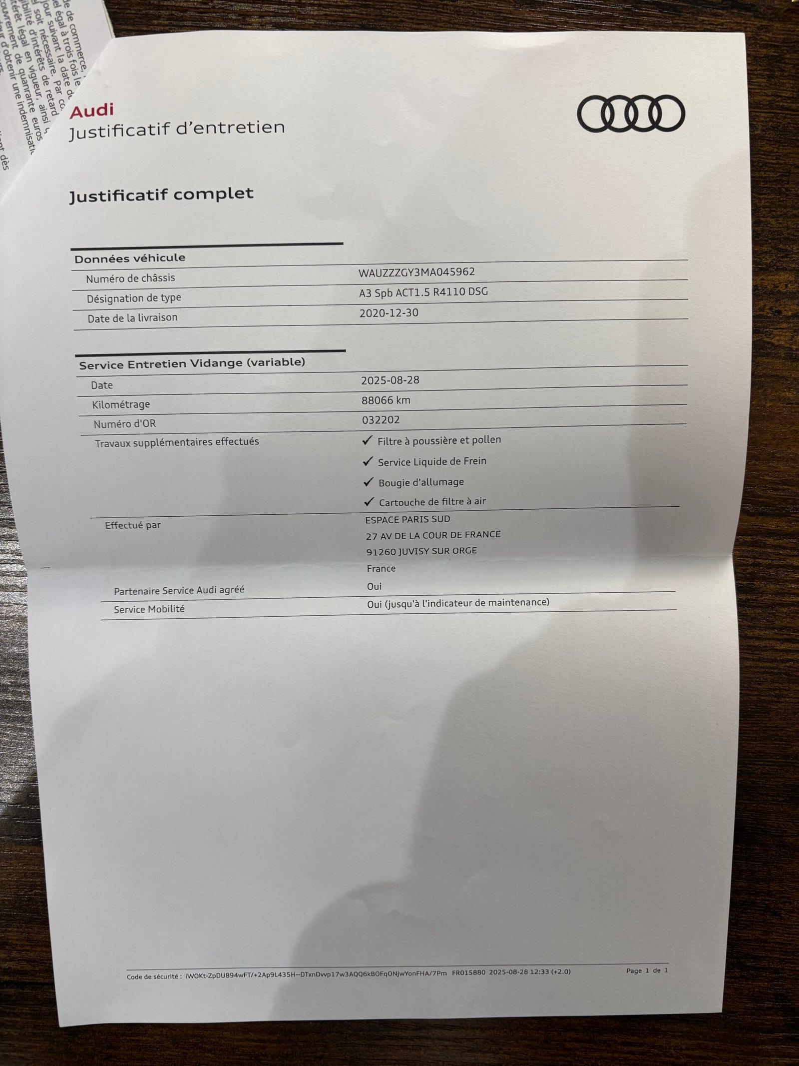 carnet d’entretien et factures disponibles.