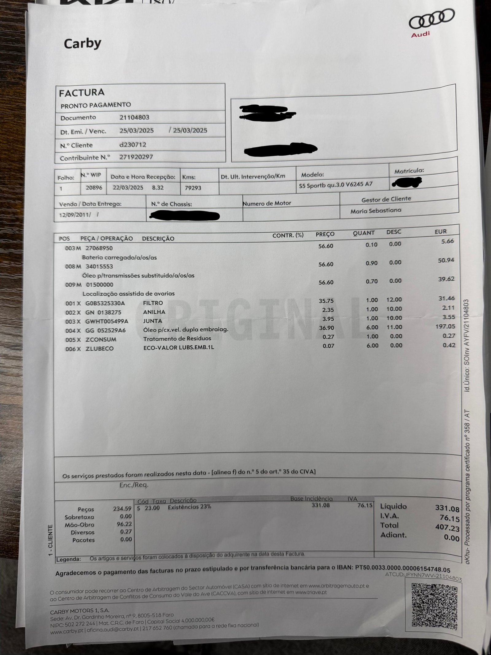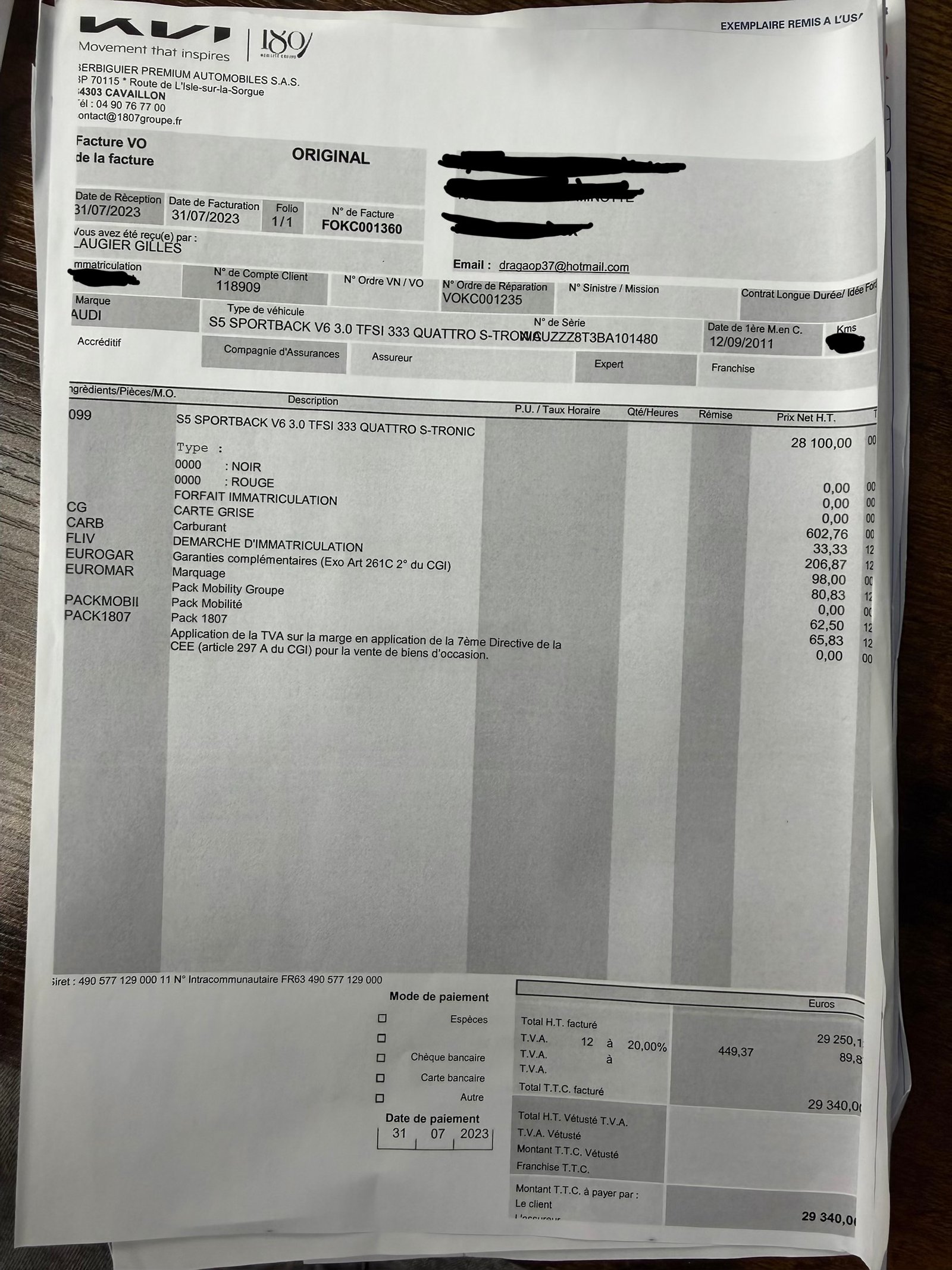 ✔️ Factures d’entretiens disponible