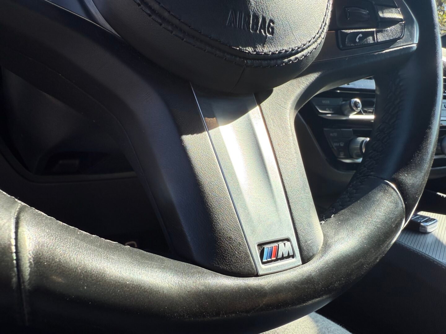 • Volant 3 branches en cuir, à partie inférieure plate, multifonction