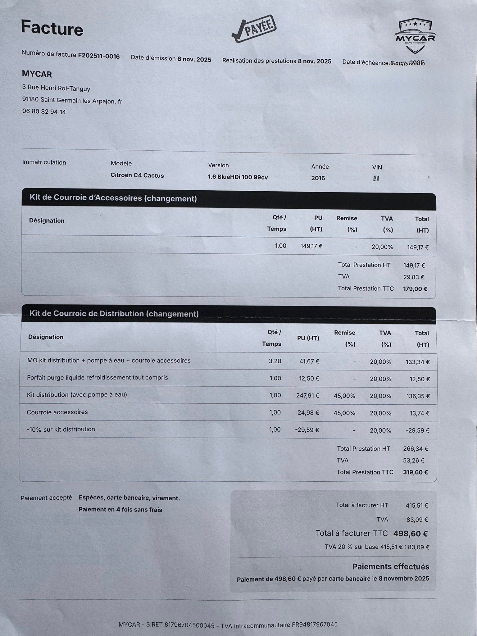 carnet d’entretien et factures disponibles.