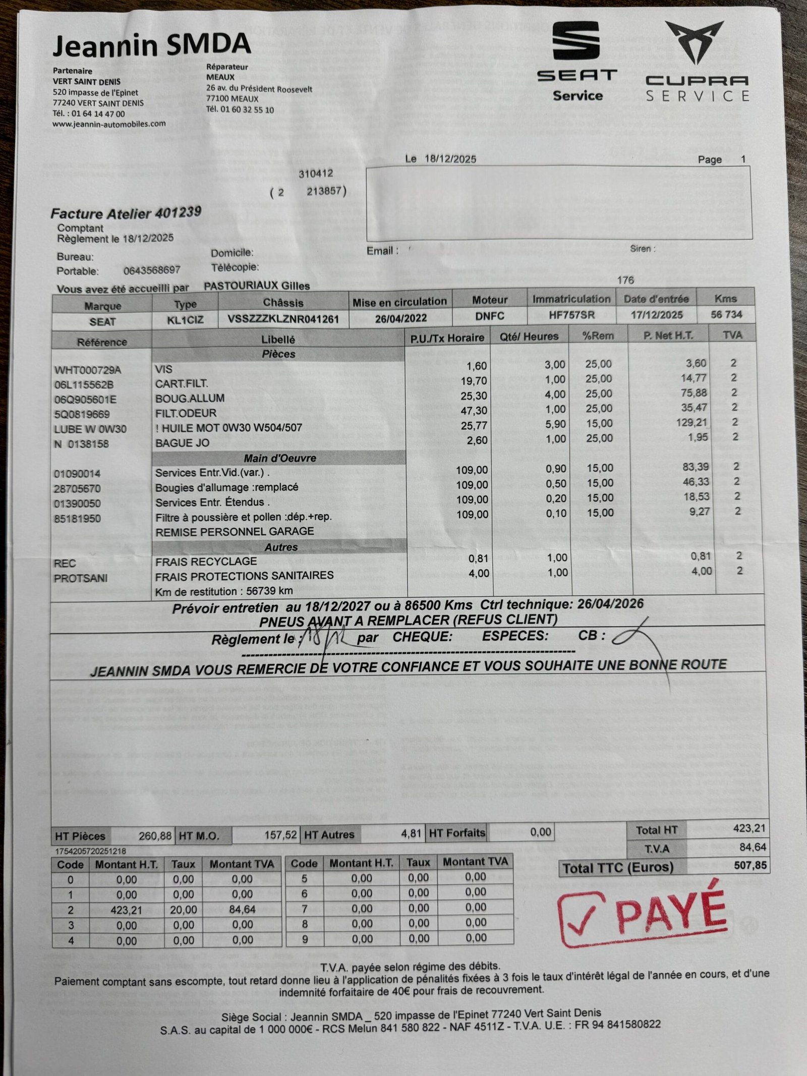 ✔️ Factures d’entretiens disponibles