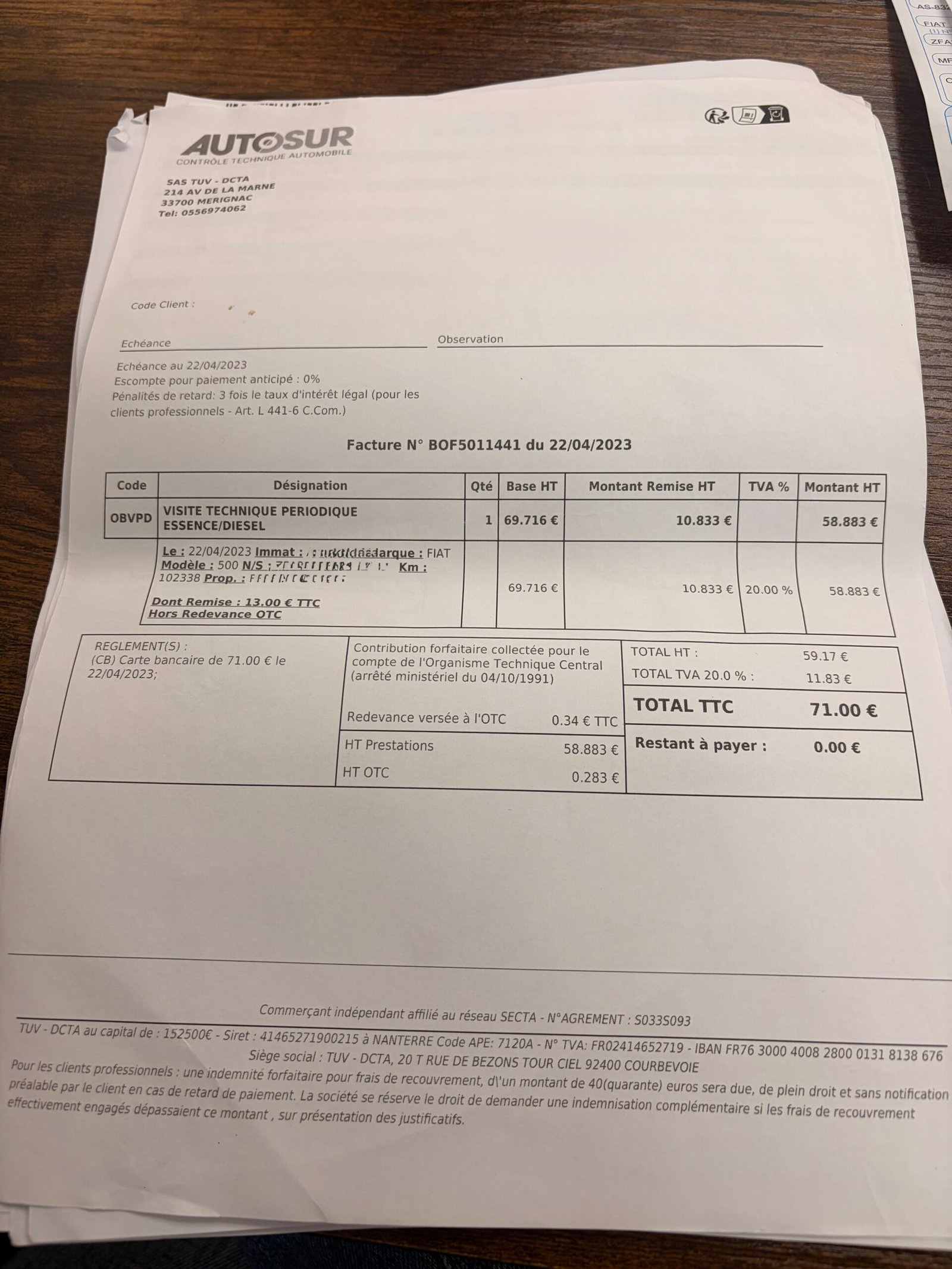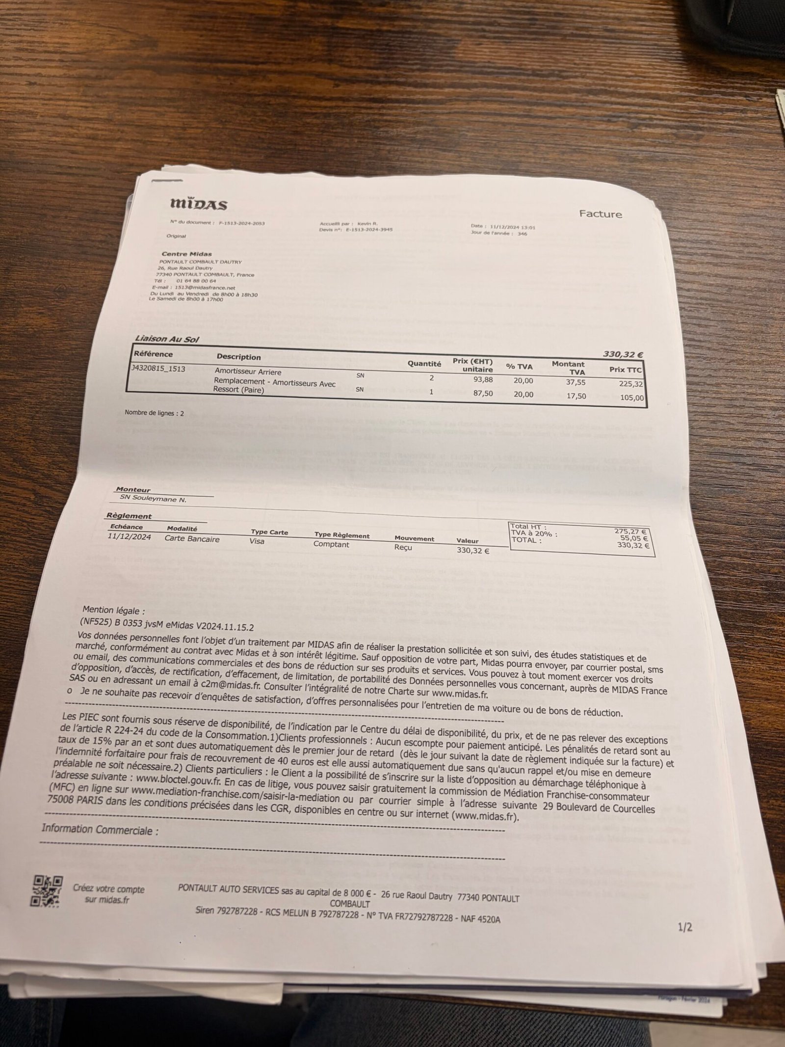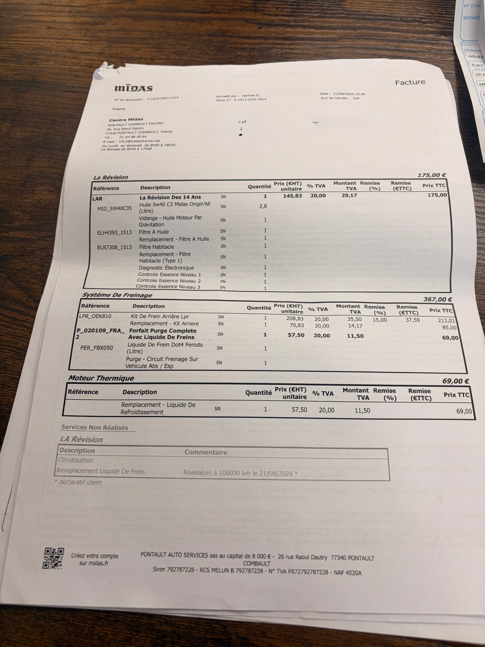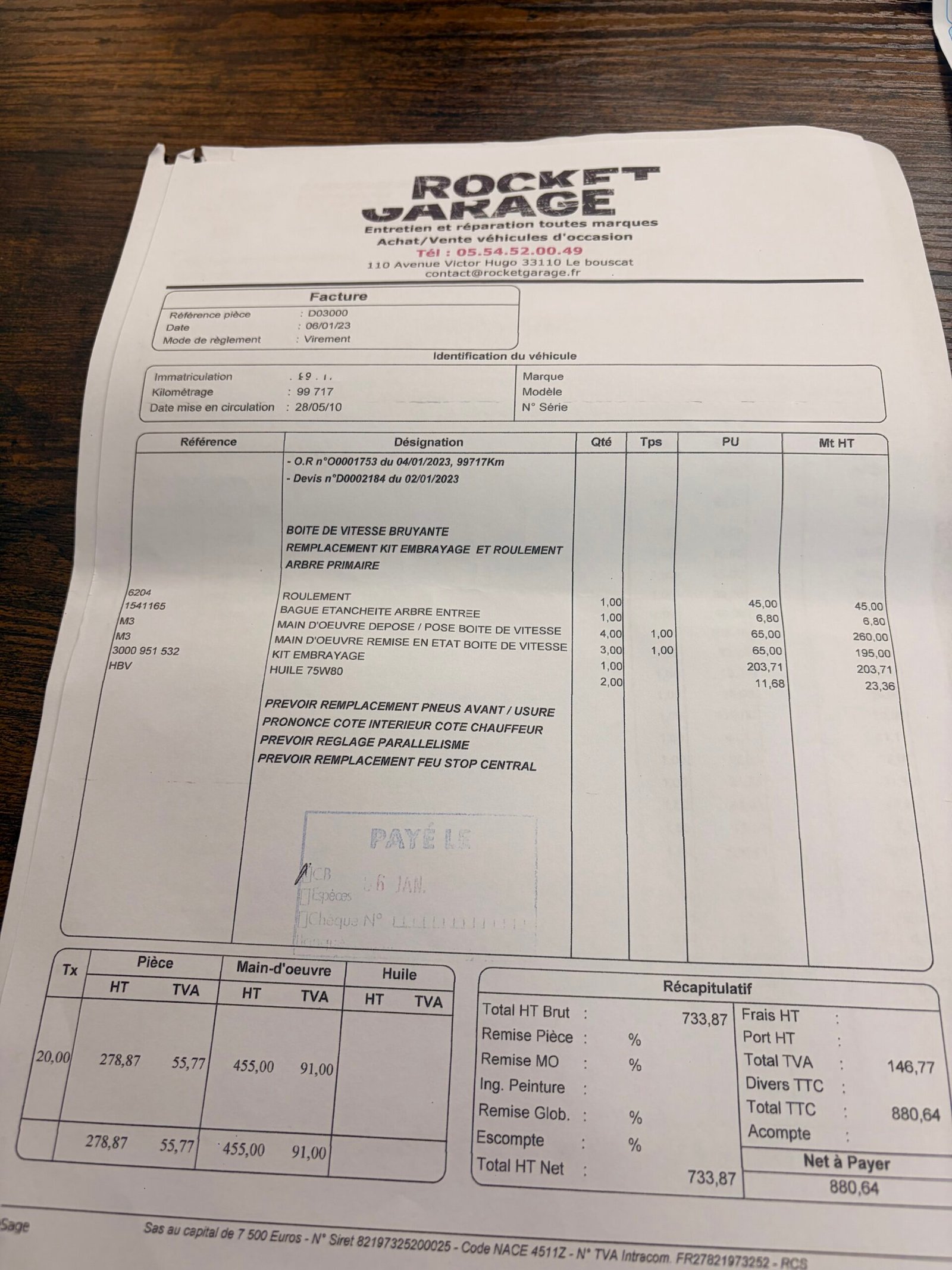 ✔️ Factures d’entretiens et dernière révisions effectuées le 03/10/2025