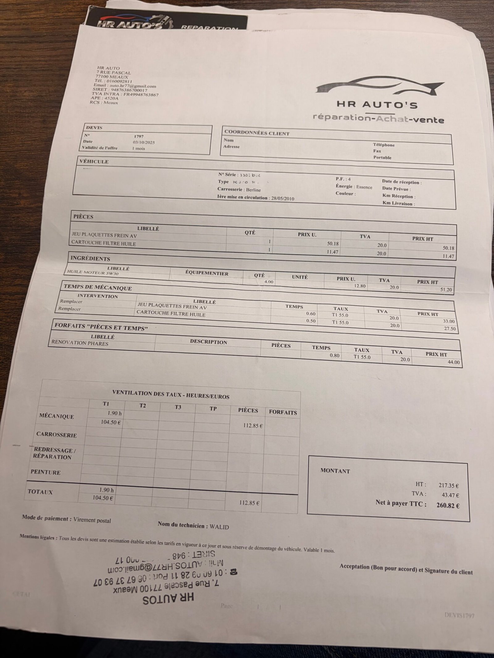 ✔️ Réalisé chez HR Auto’s le 03/10/2025