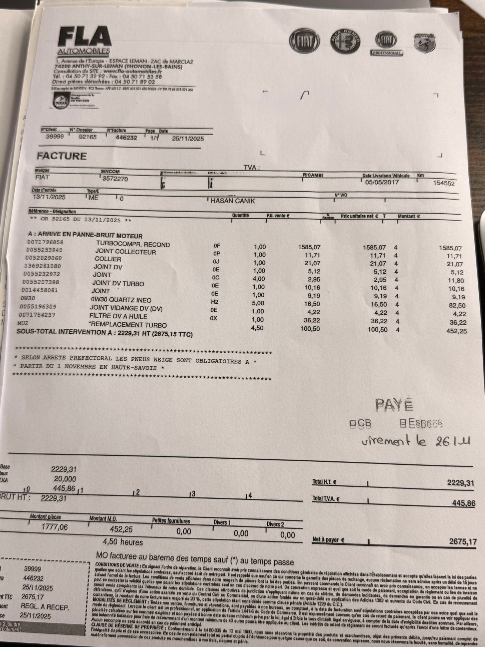 ⚠️ véhicule français, de nombreuses factures sont disponibles
