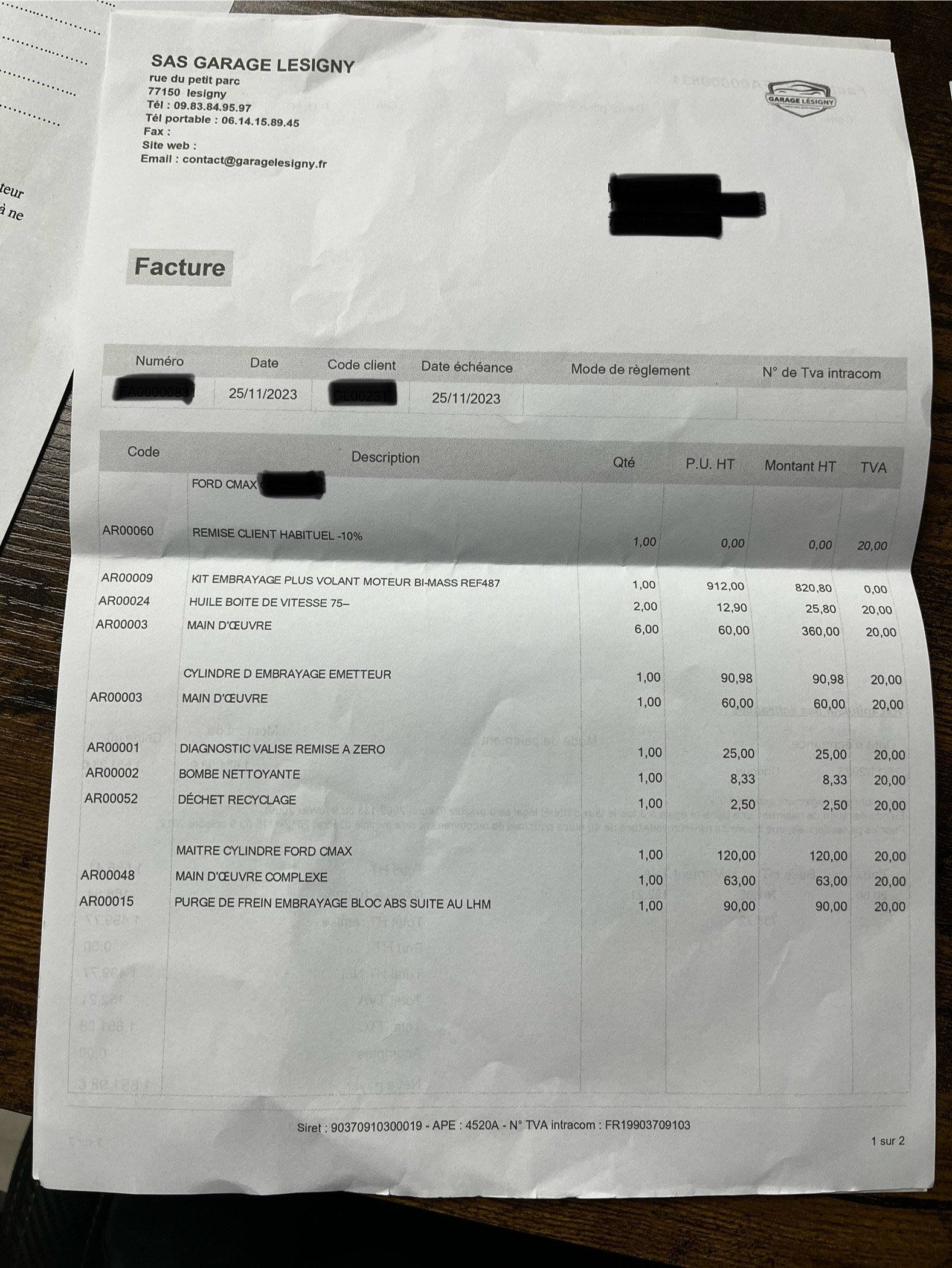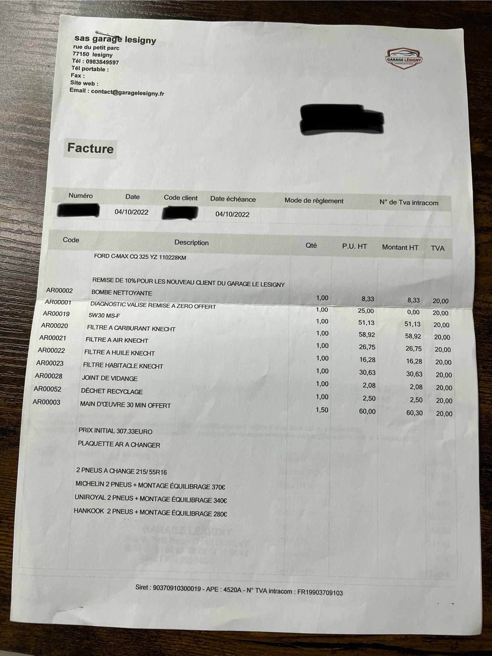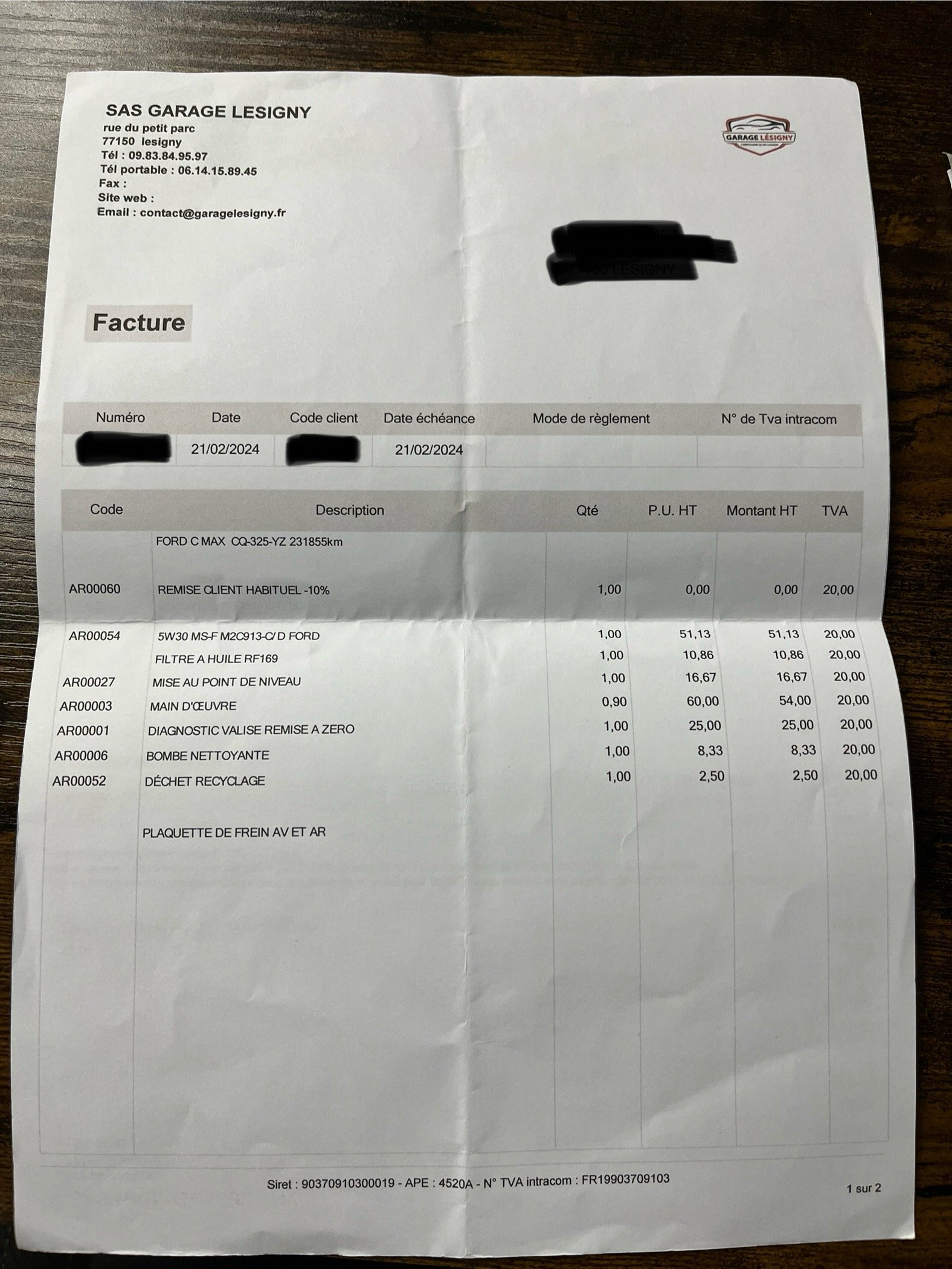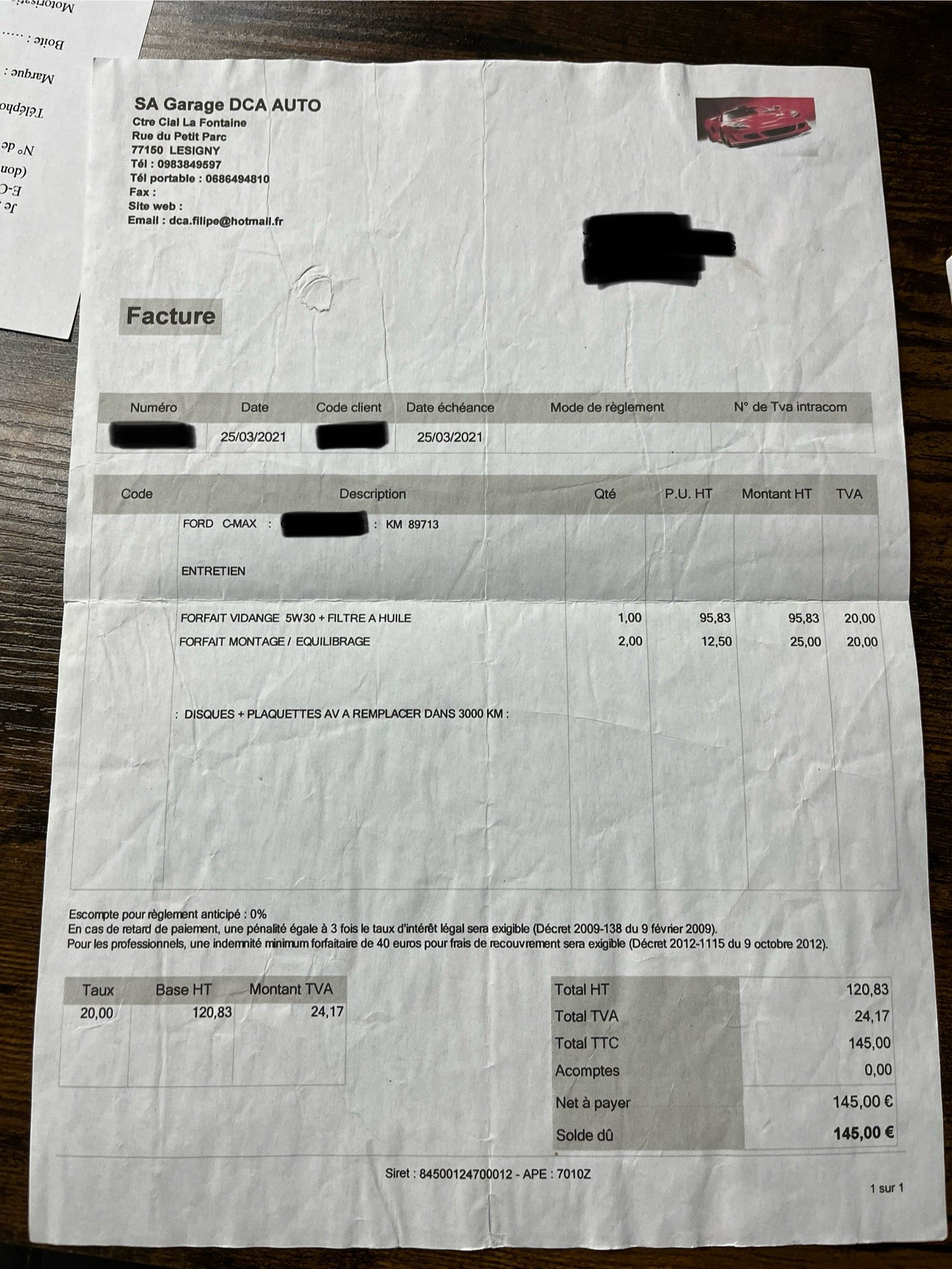 ✔️ Factures d’entretiens disponibles