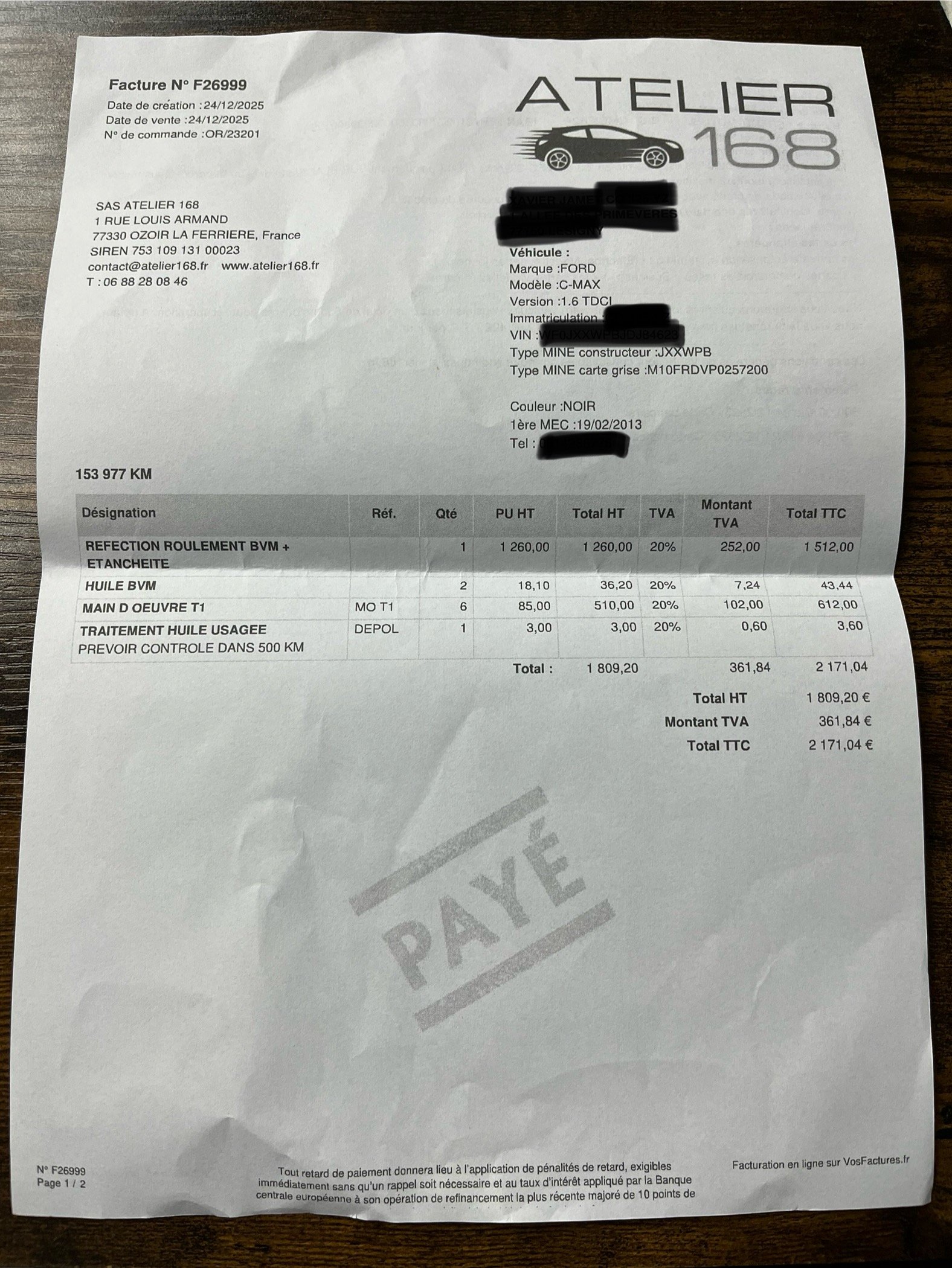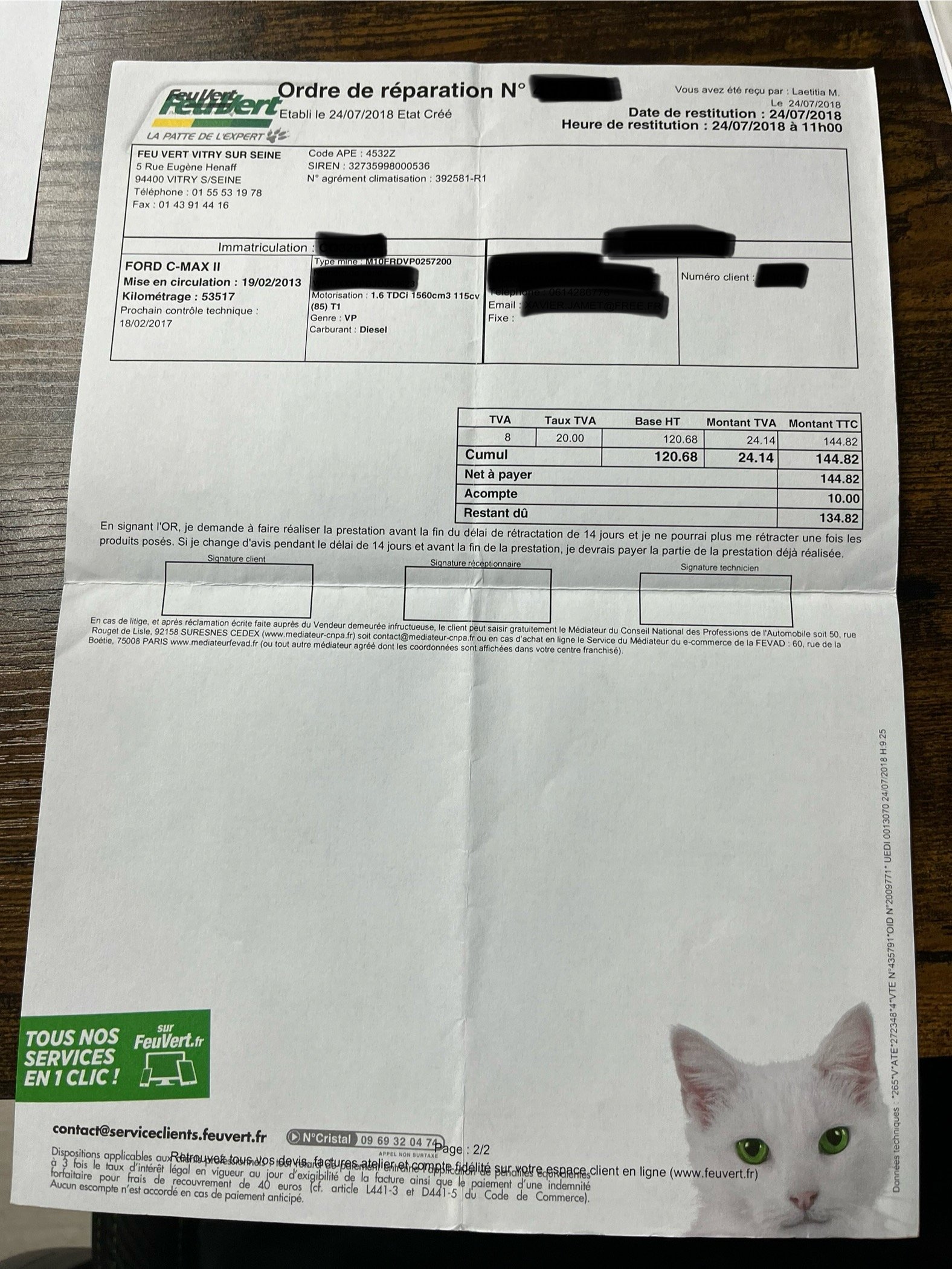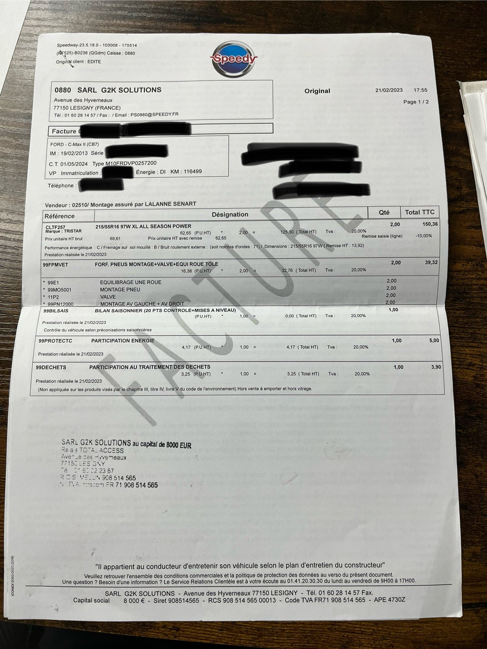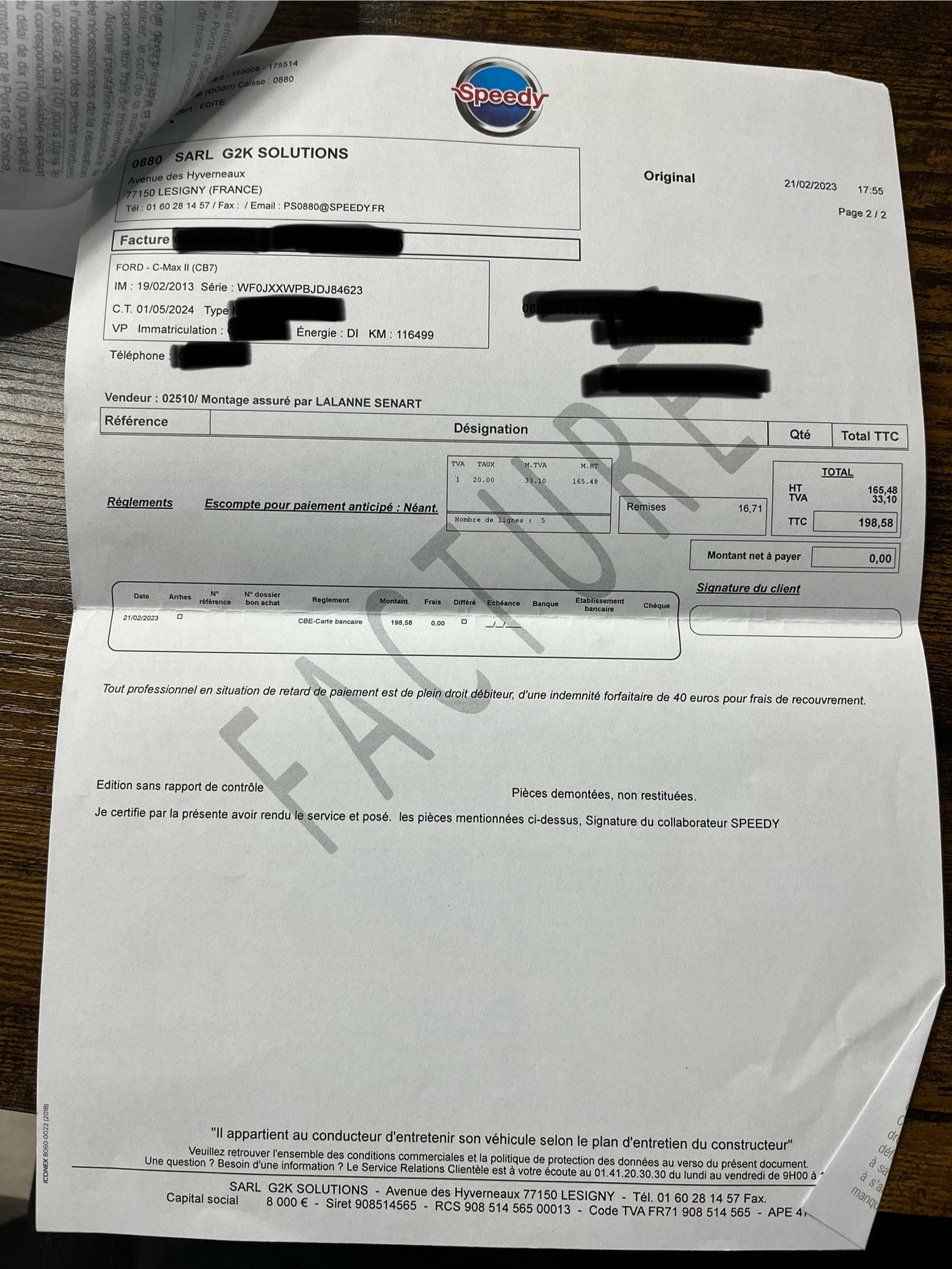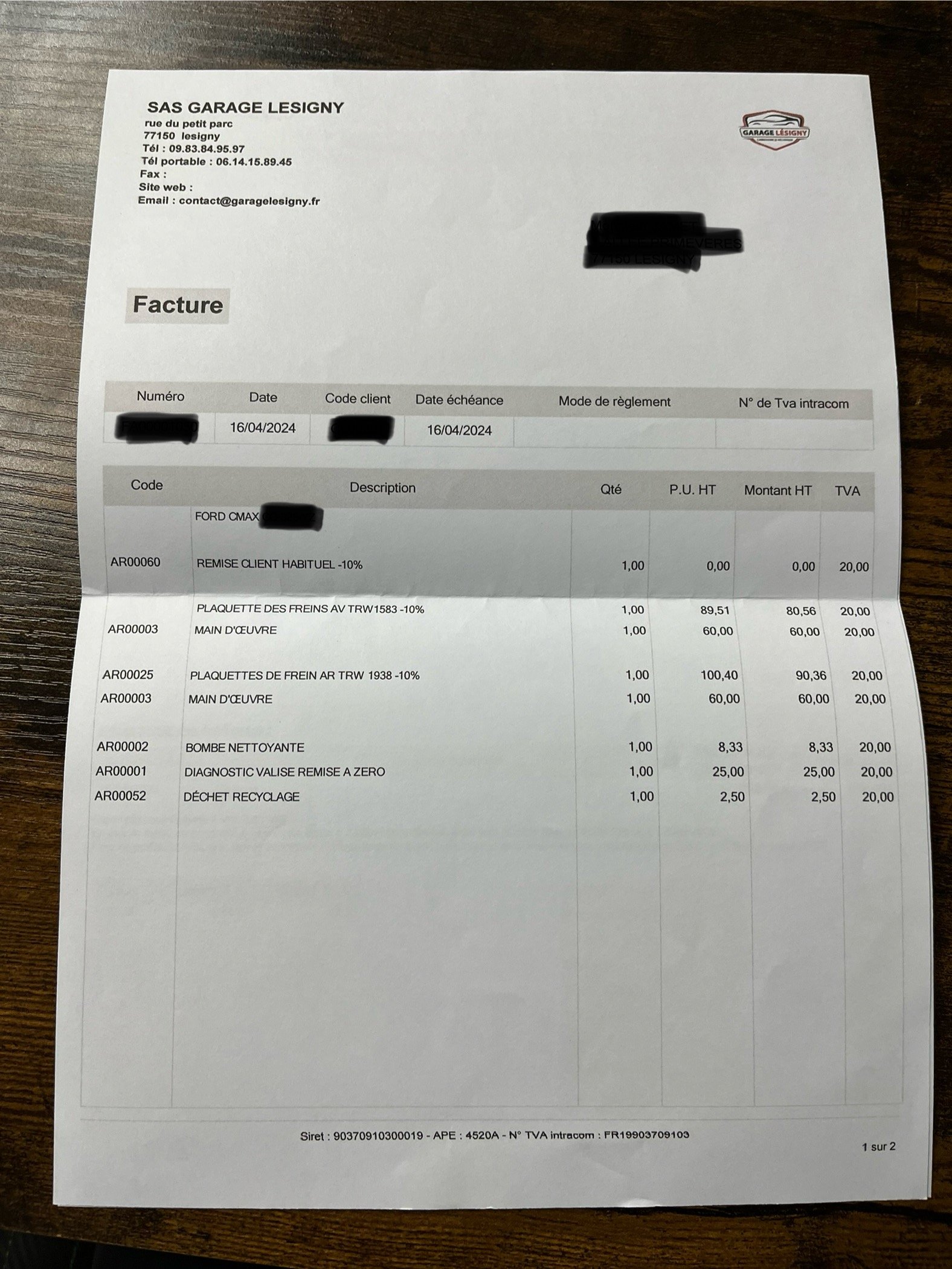 ✔️ Factures d’entretiens disponibles