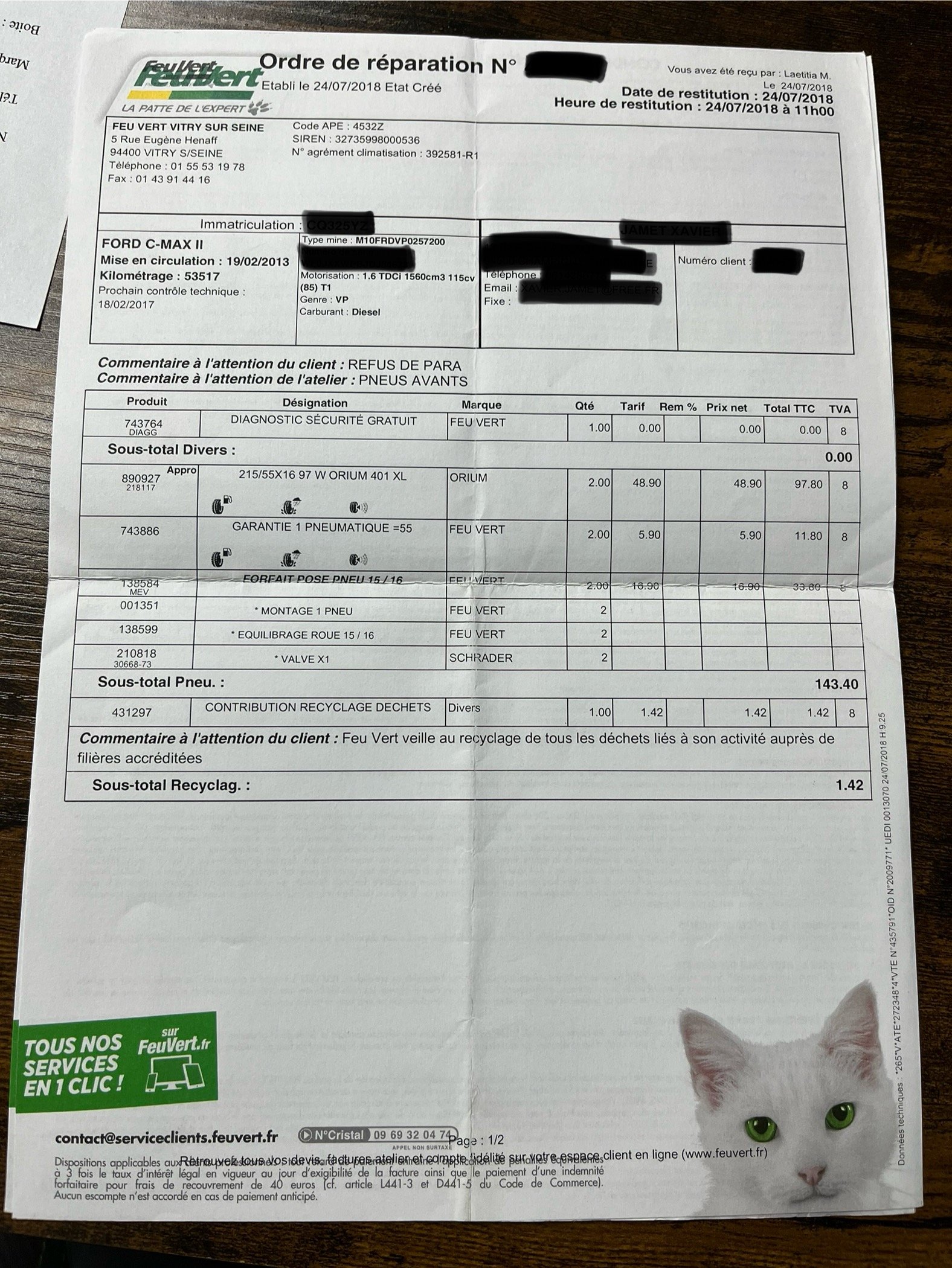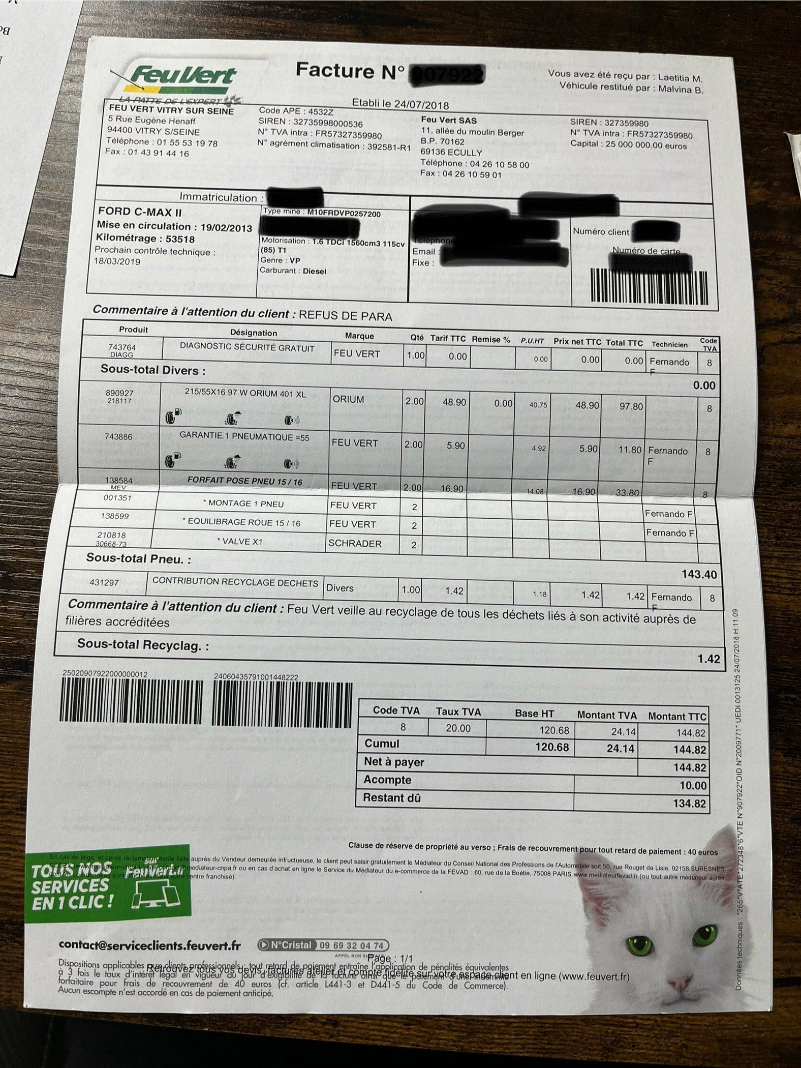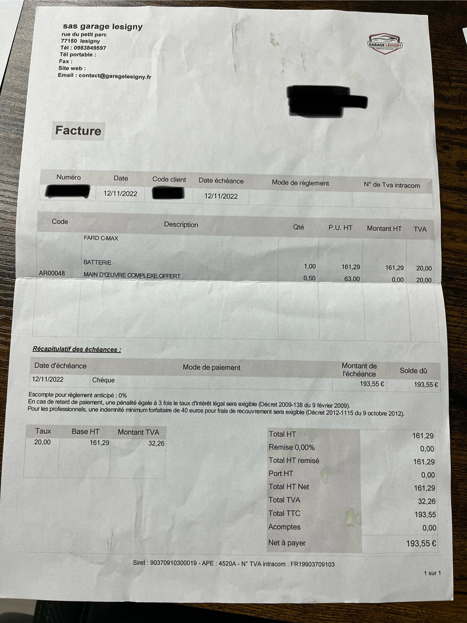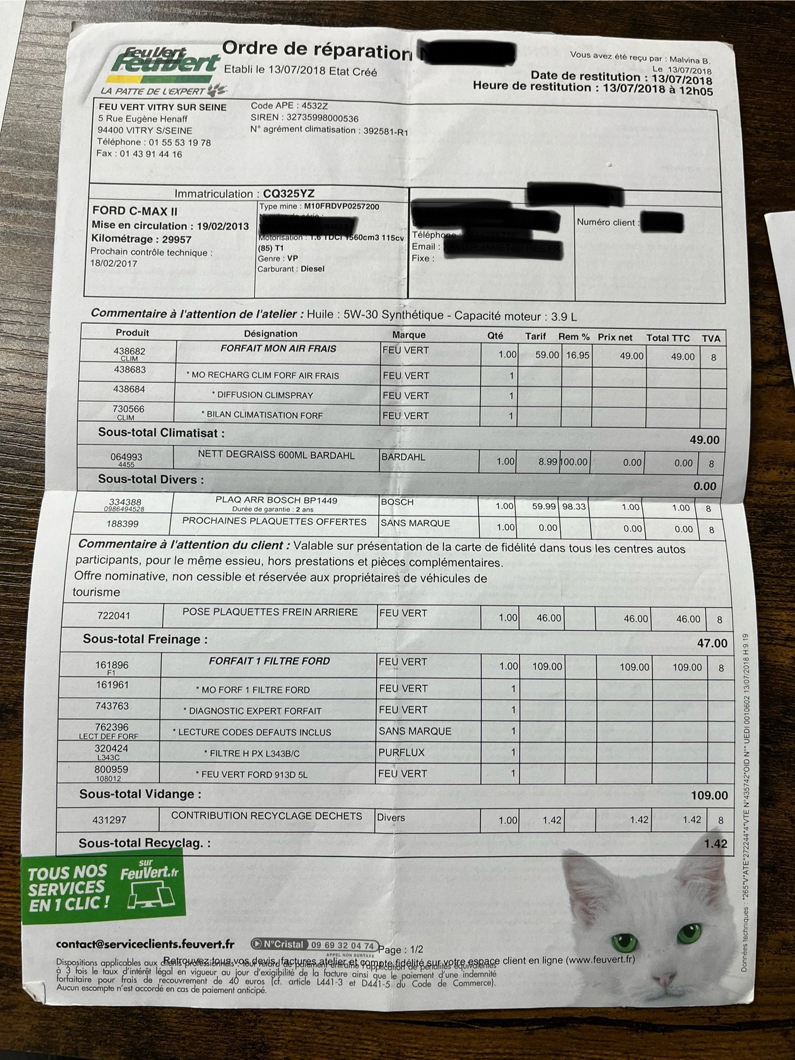 ✔️ Factures d’entretiens disponibles