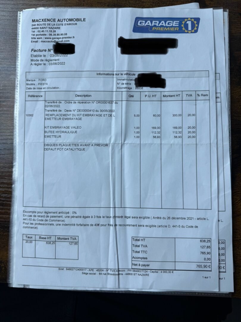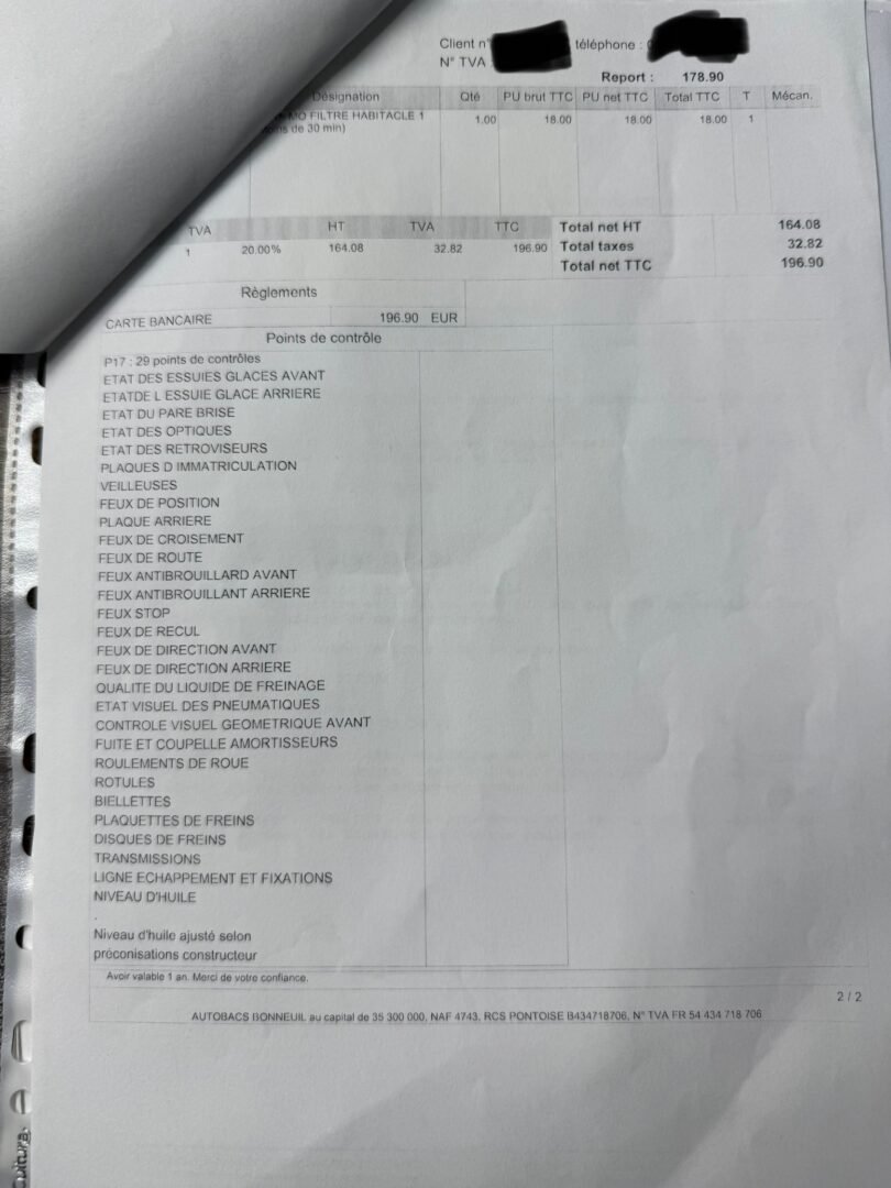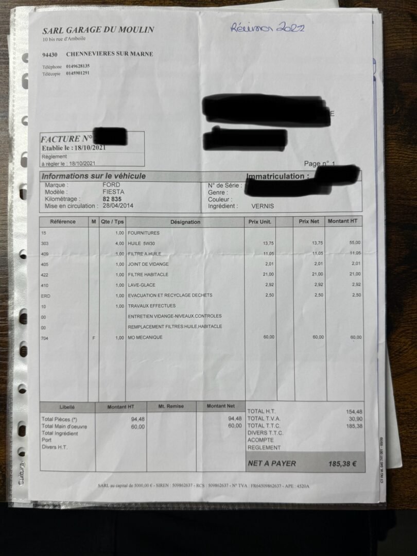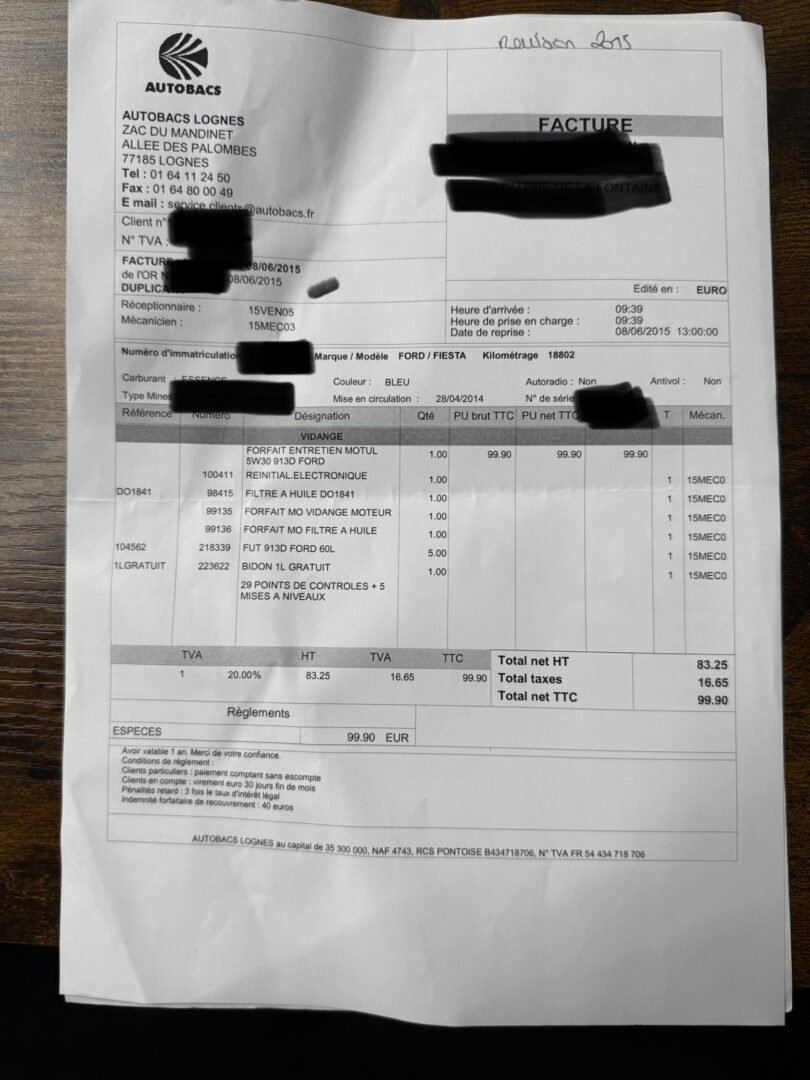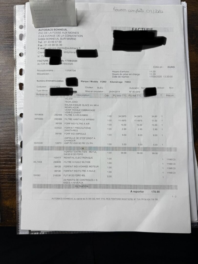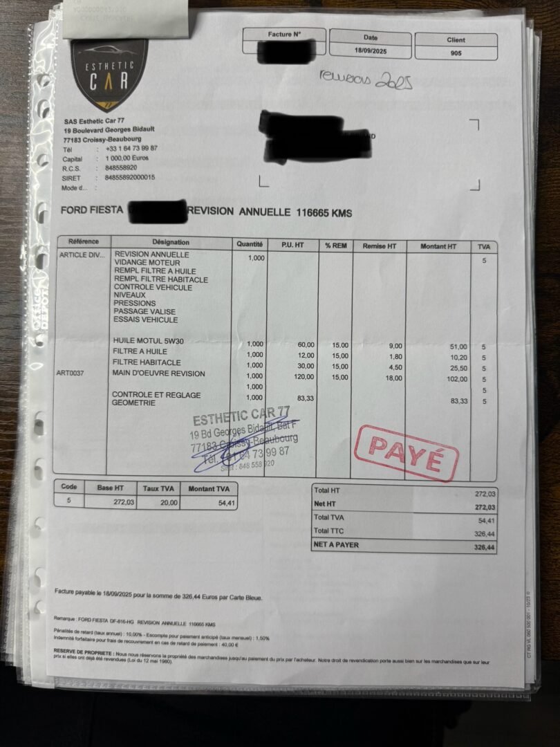 ✔️ Factures d’entretiens disponibles
