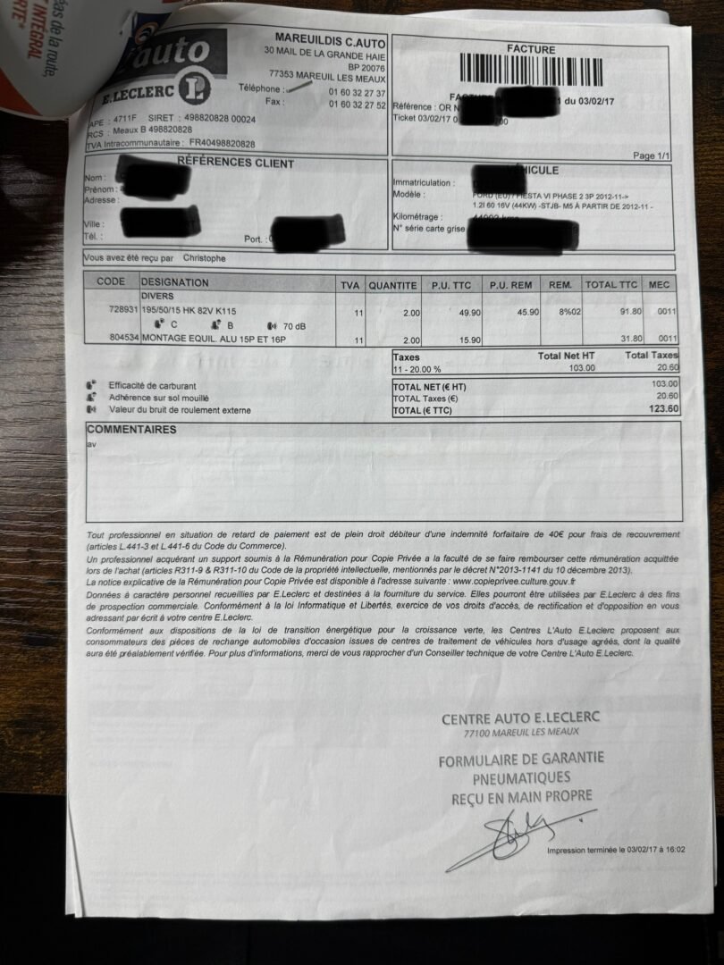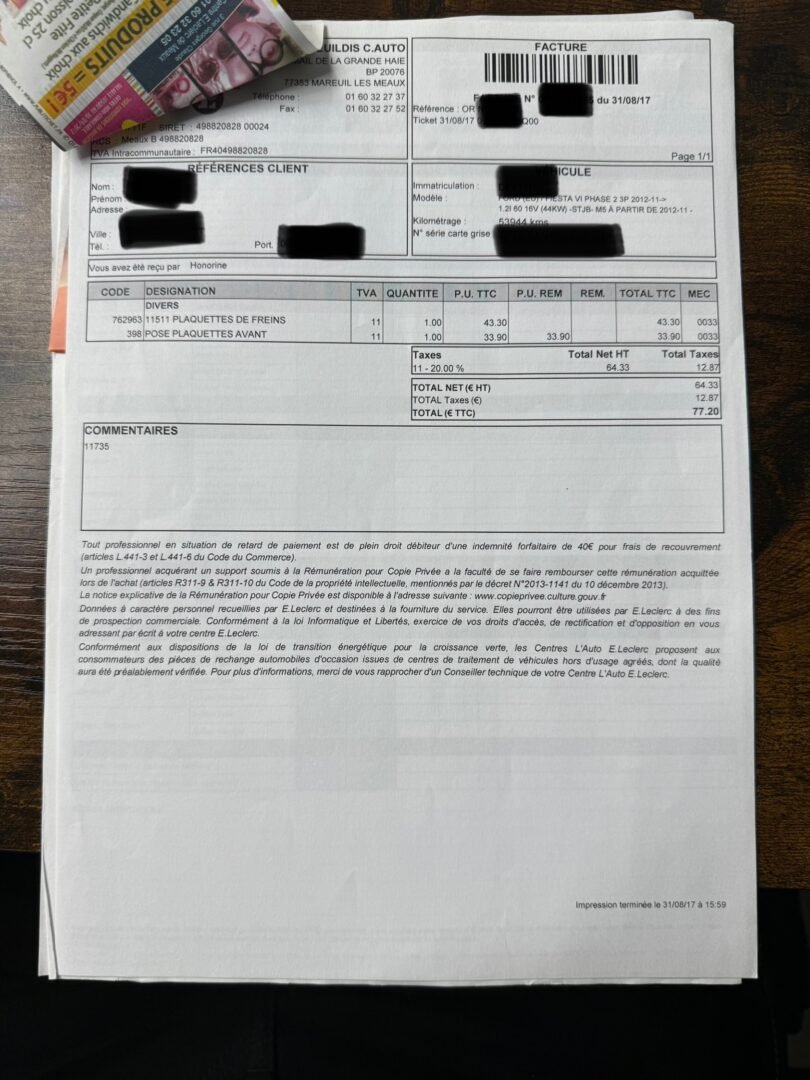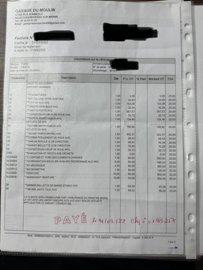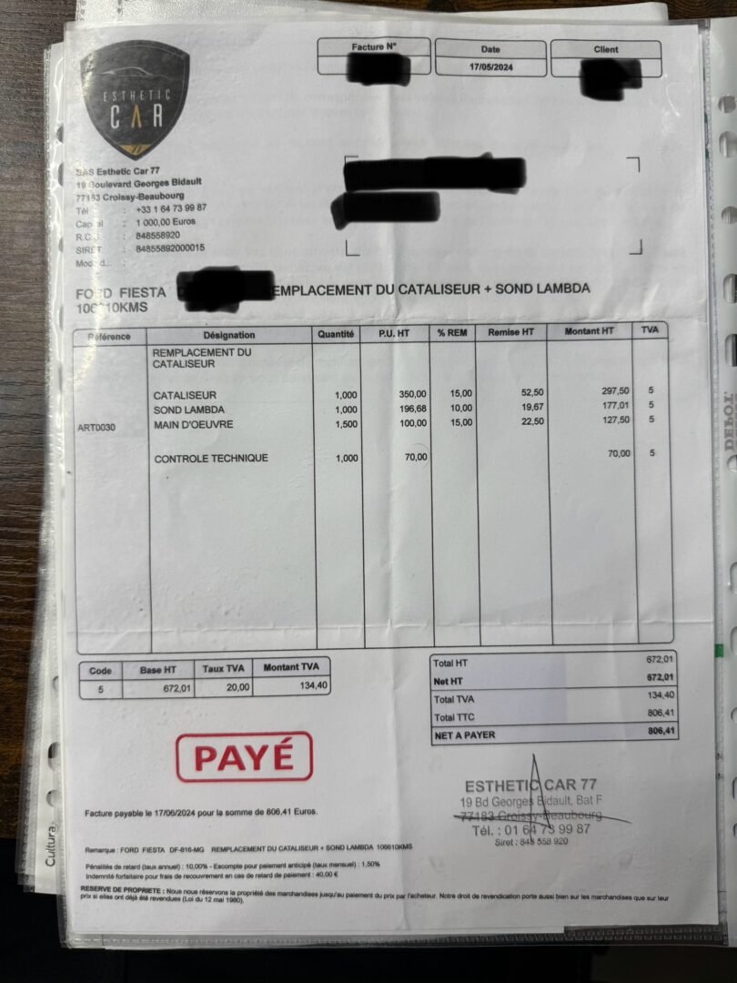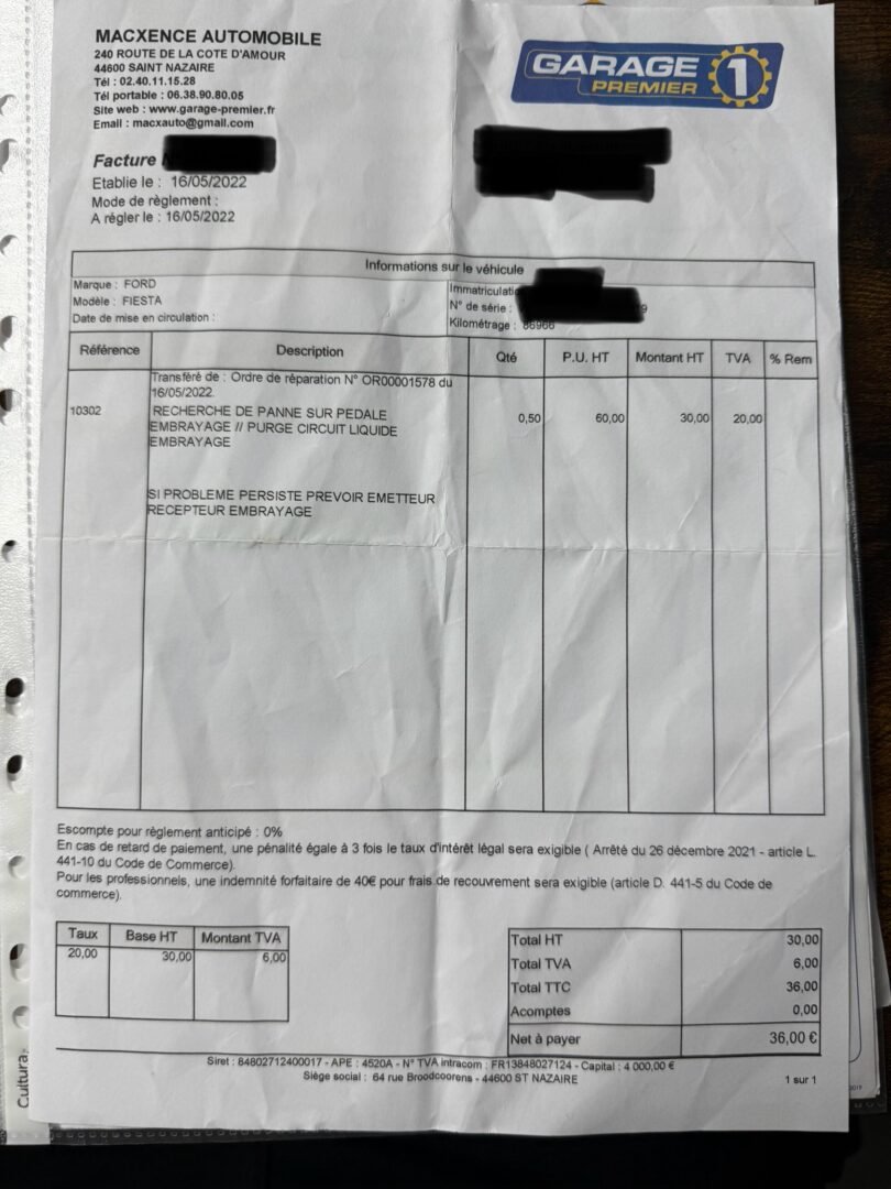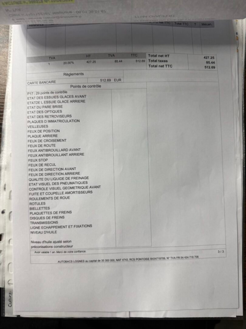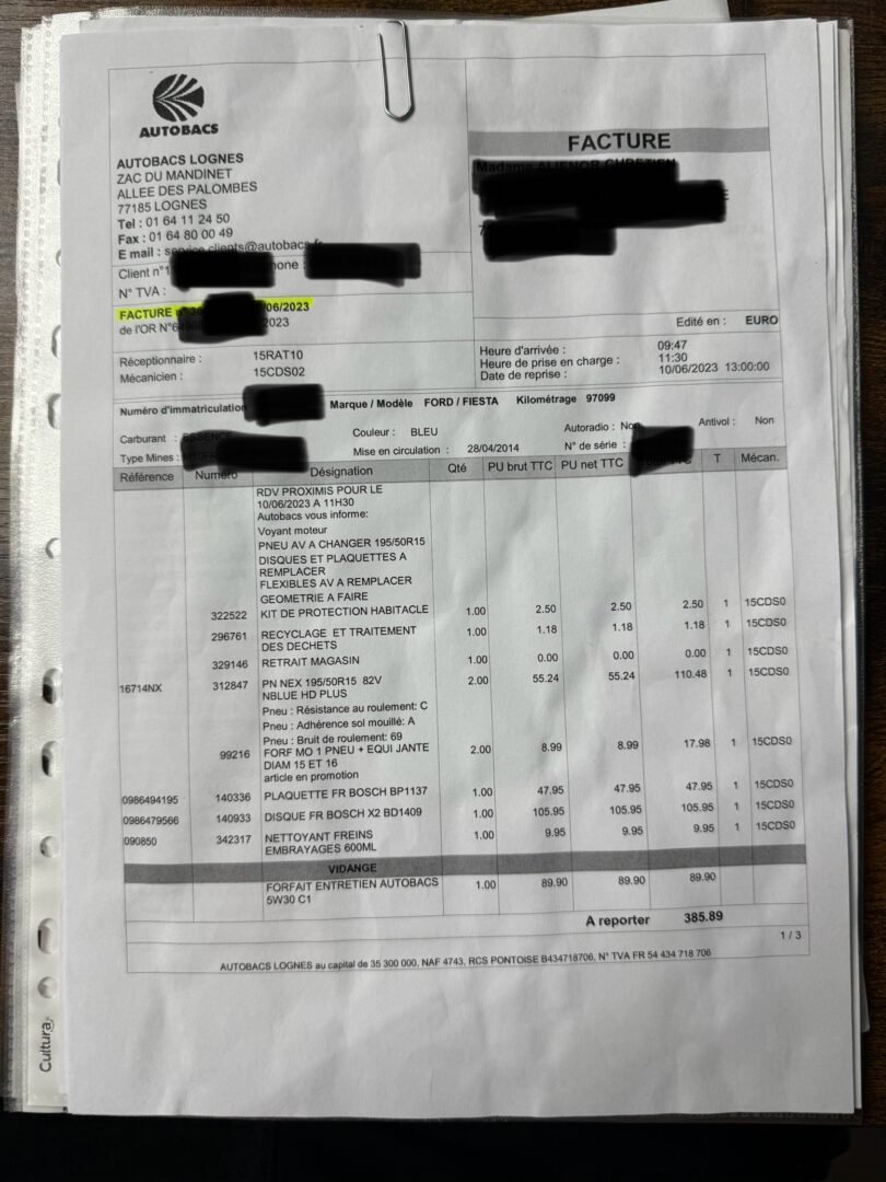 ✔️ Factures d’entretiens disponibles