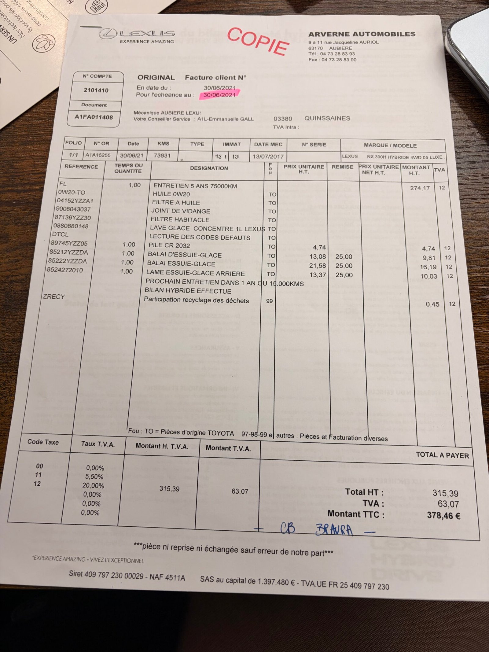 ✔️ Réalisé chez LEXUS le 17/06/2025