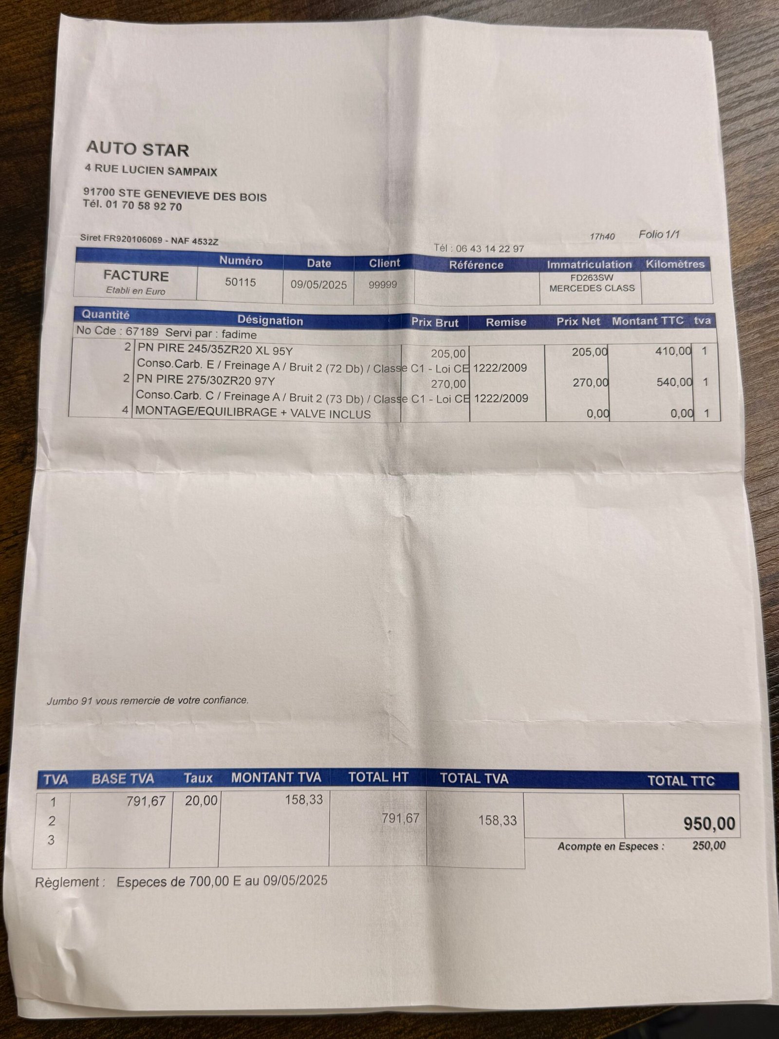 Montant de l'acompte