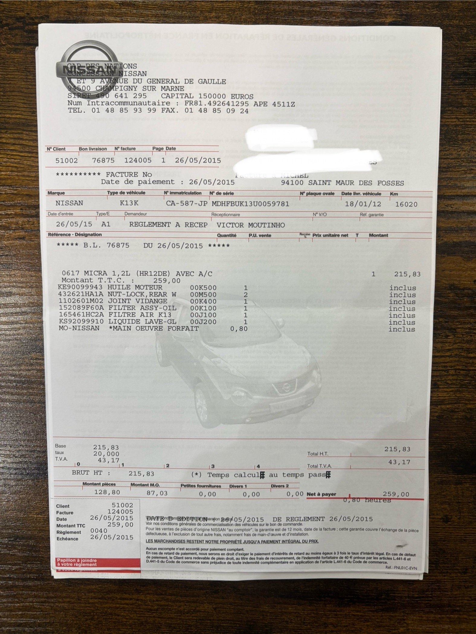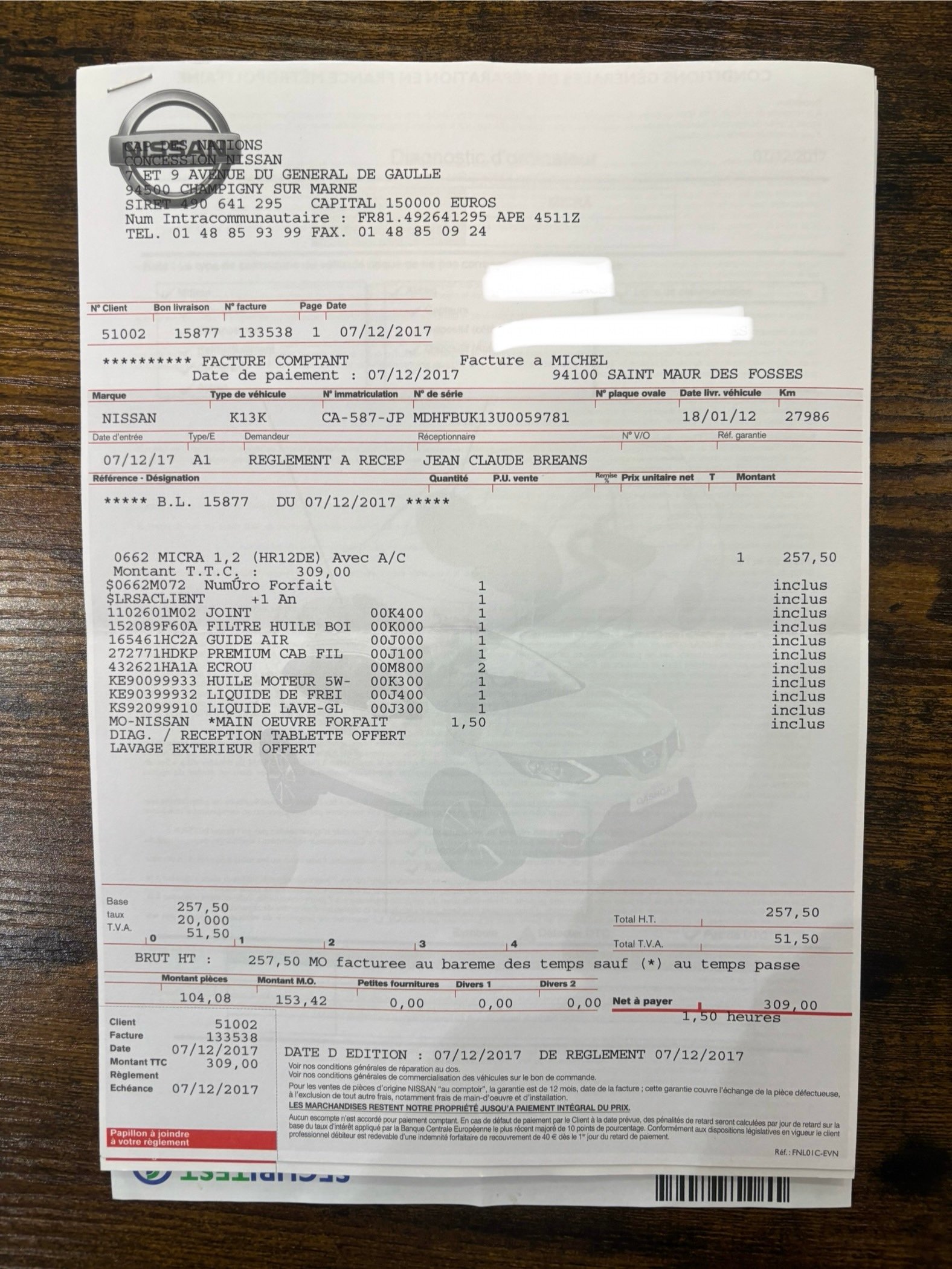 ***** 2eme MAIN SUIVI ENTRETIEN NISSAN *****