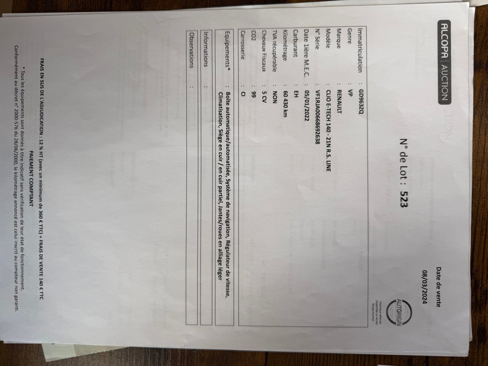 🔍 À noter : Malgré tout le soin apporté à cette annonce, des erreurs peuvent s’y glisser. Les équipements sont donnés à titre indicatif. Merci de bien vouloir vérifier les informations lors de votre prise de contact.