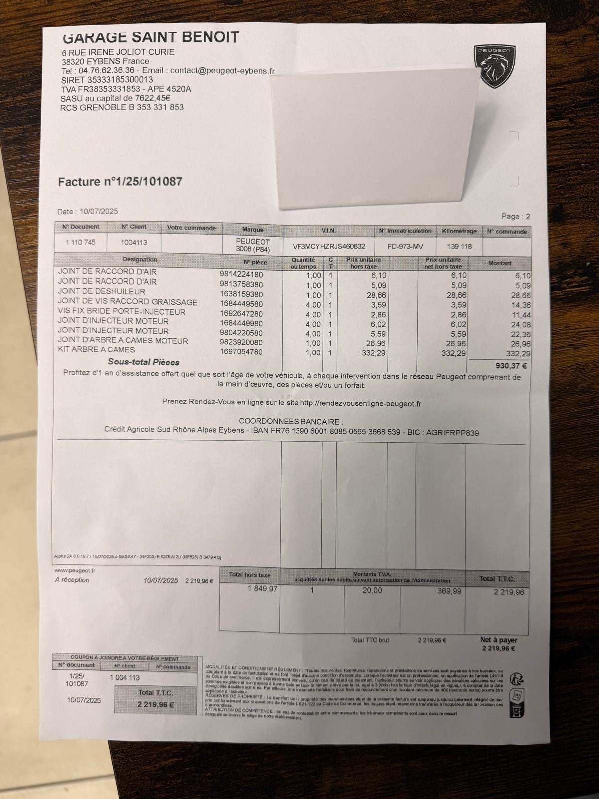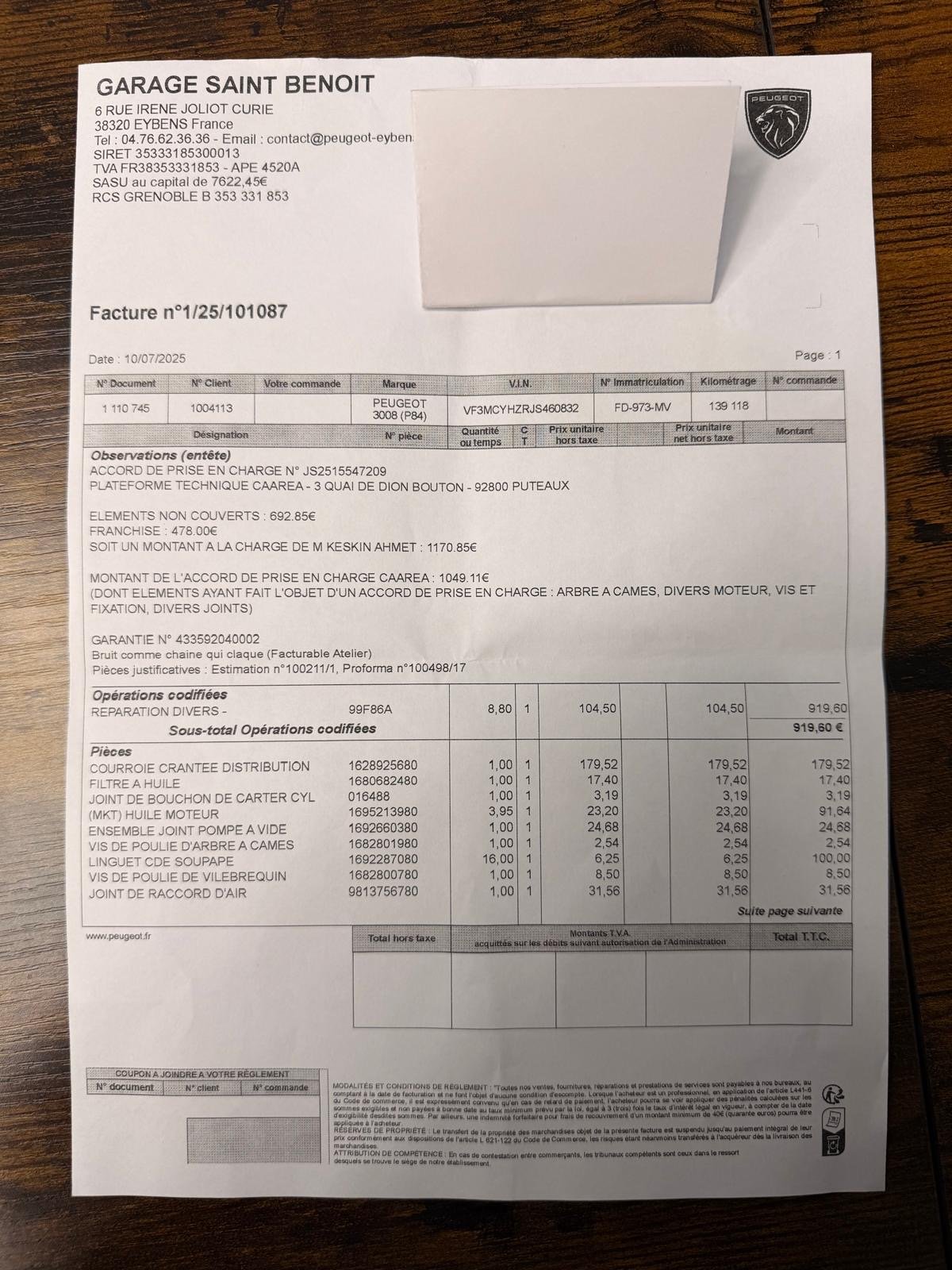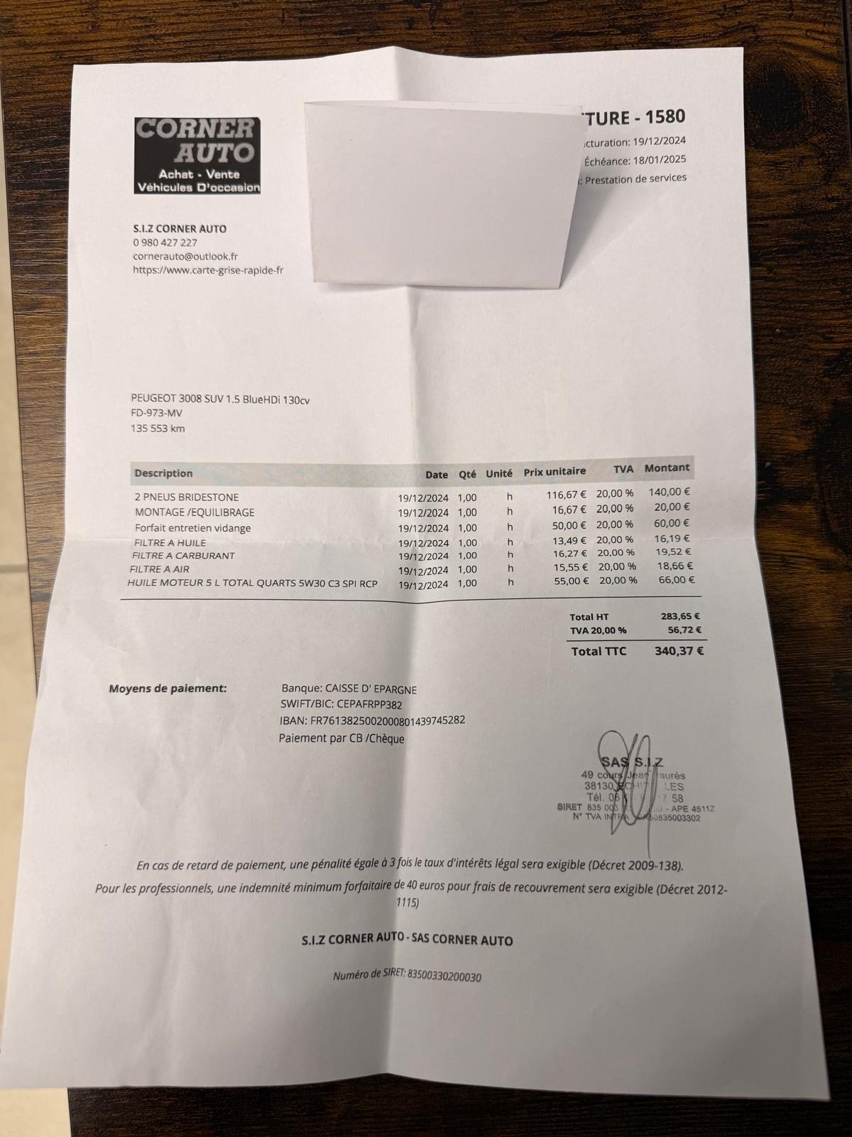 • Véhicule 100 % Français, factures disponibles avec suivis limpides.