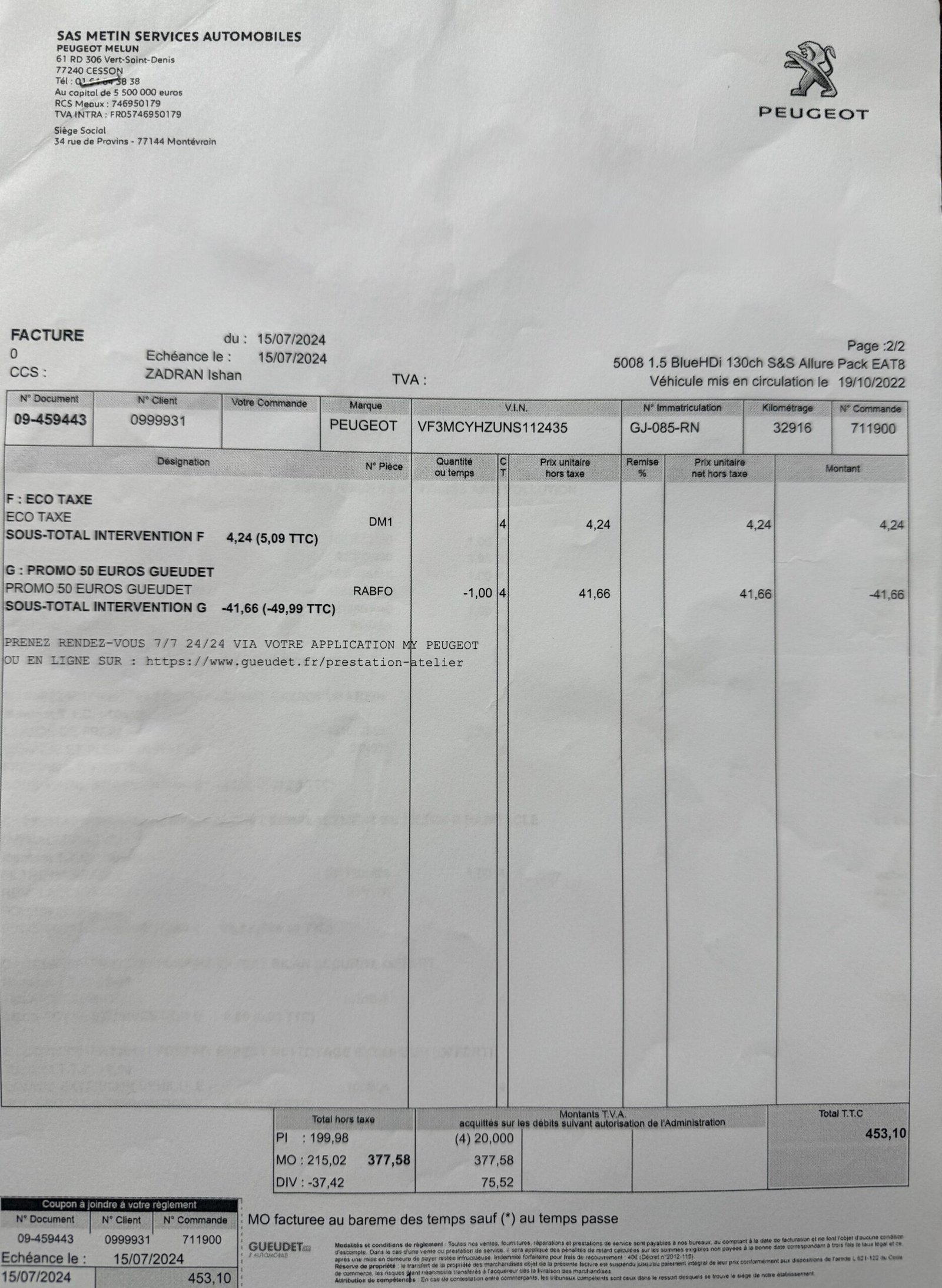 Peugeot 5008 II Phase 2 1.5 BlueHDI EAT8 S&S 130 ch finition « Allure pack »