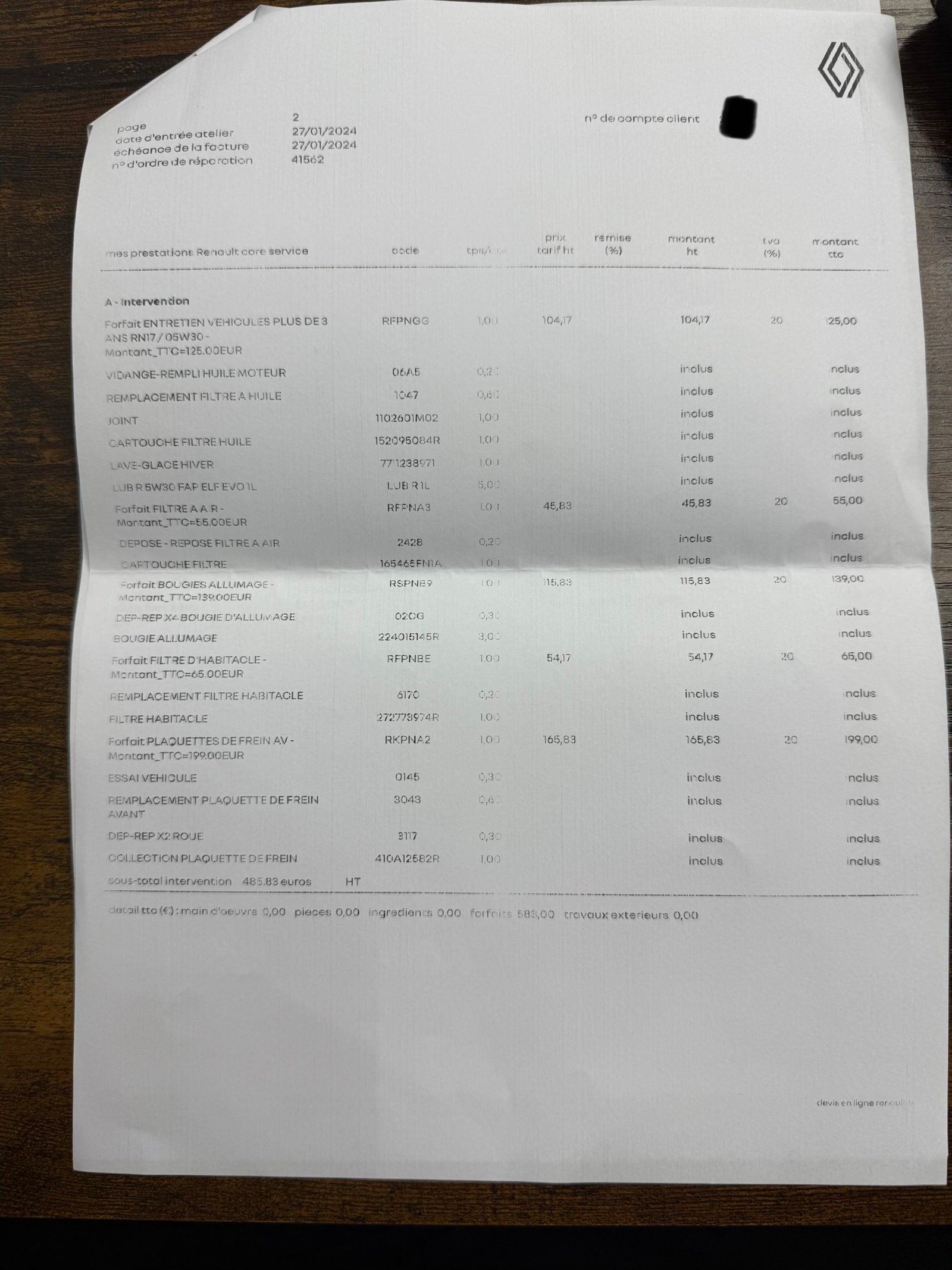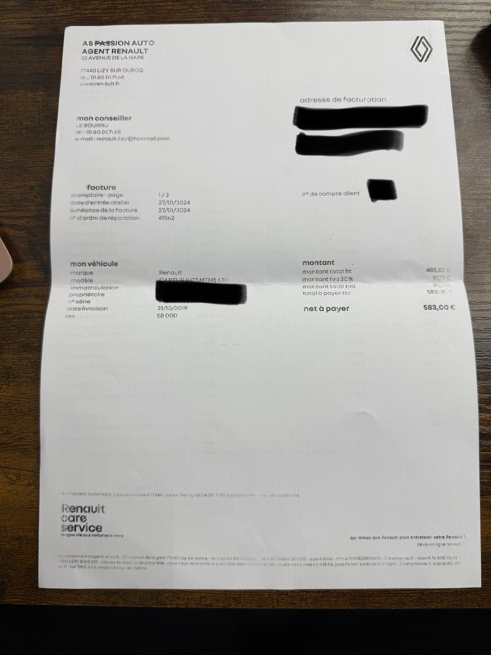 ✔️ Factures d’entretiens disponibles