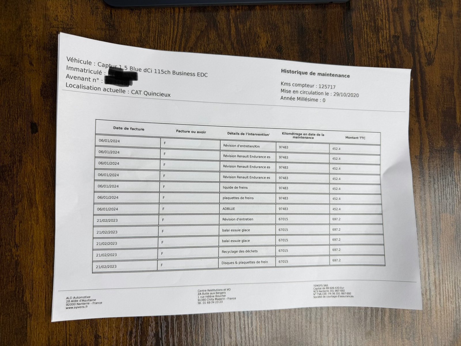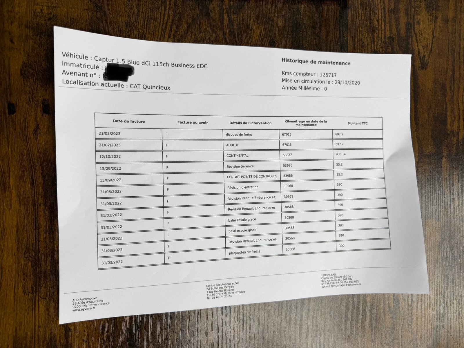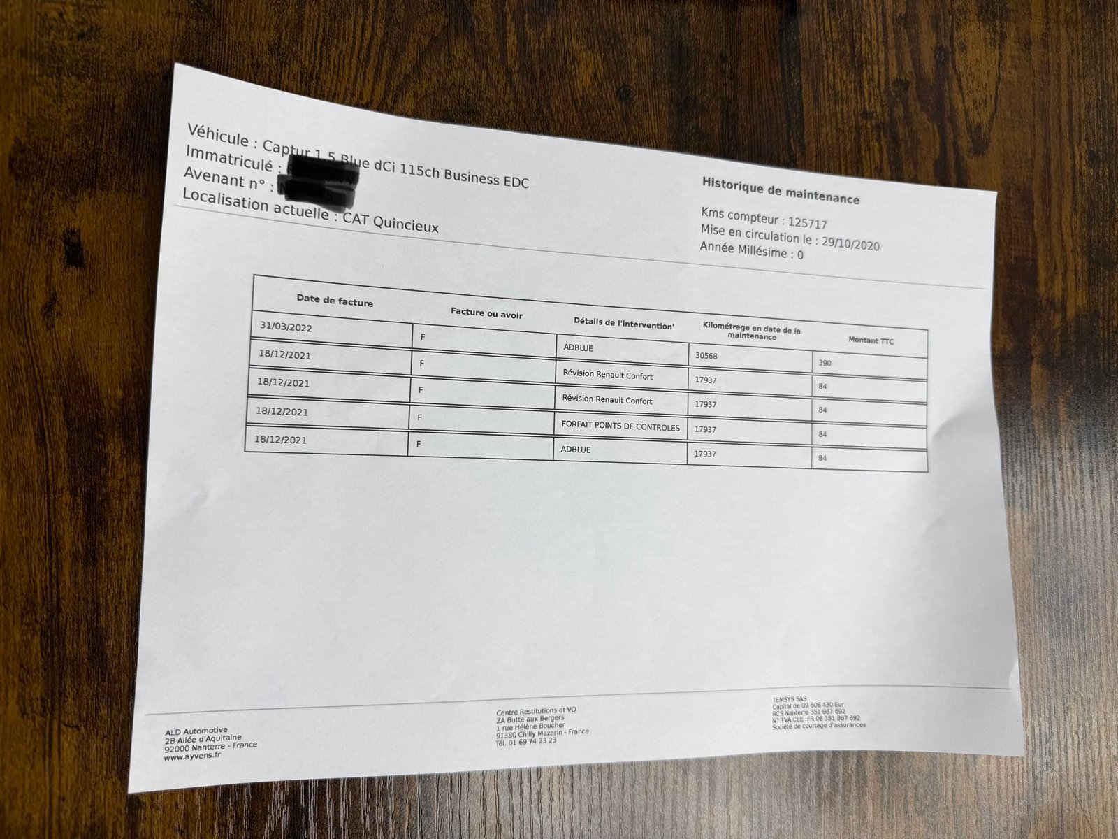 ✔️ Factures d’entretiens disponible