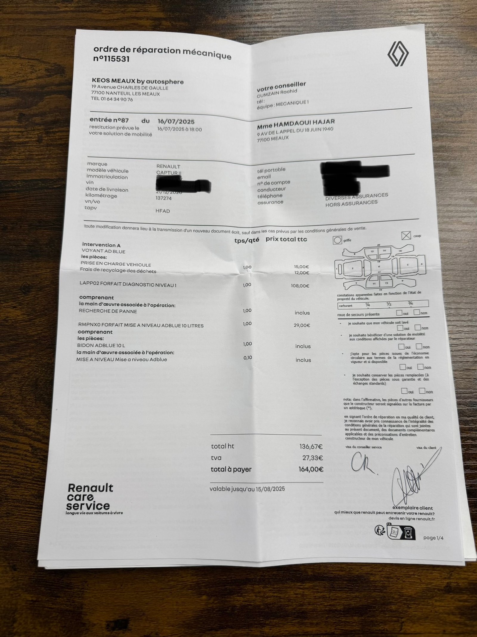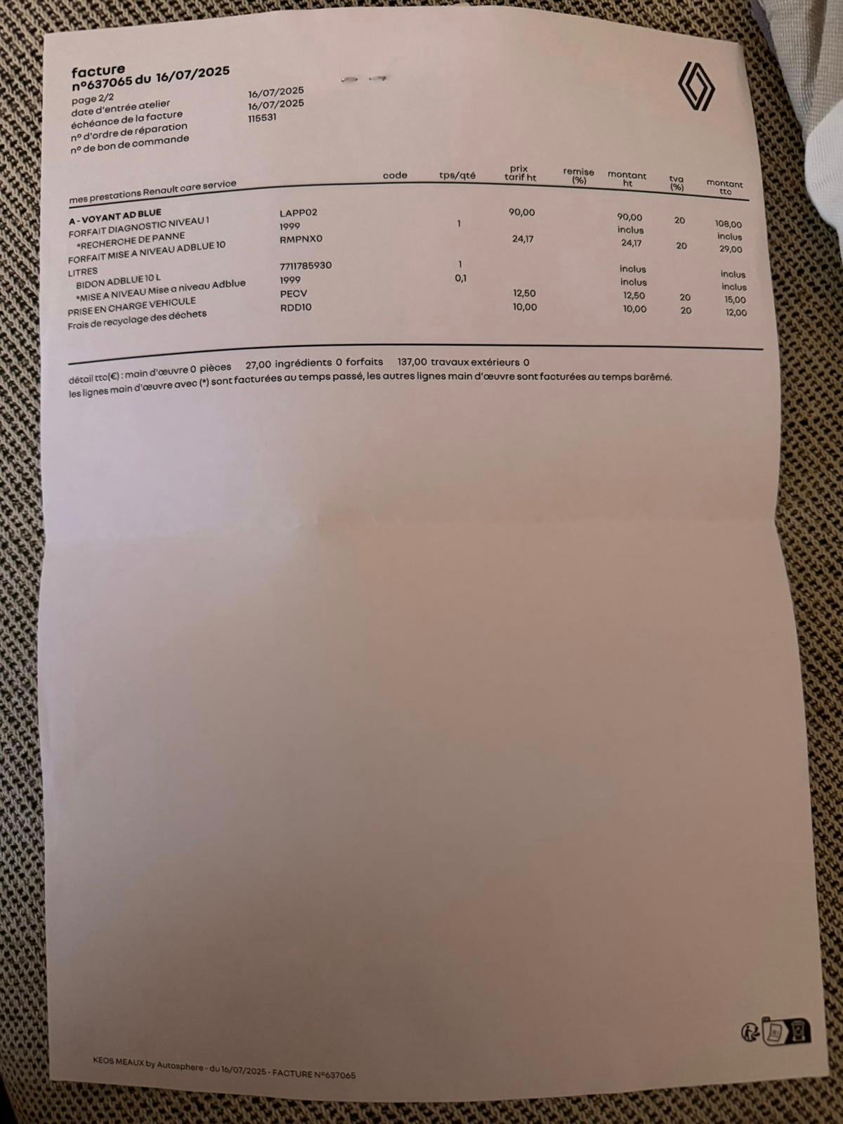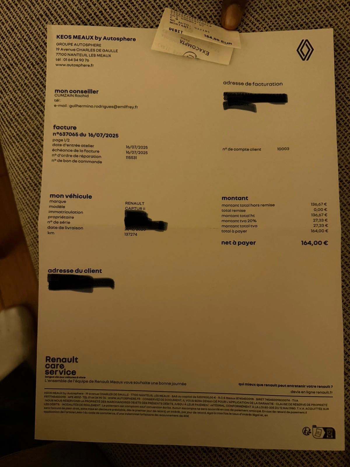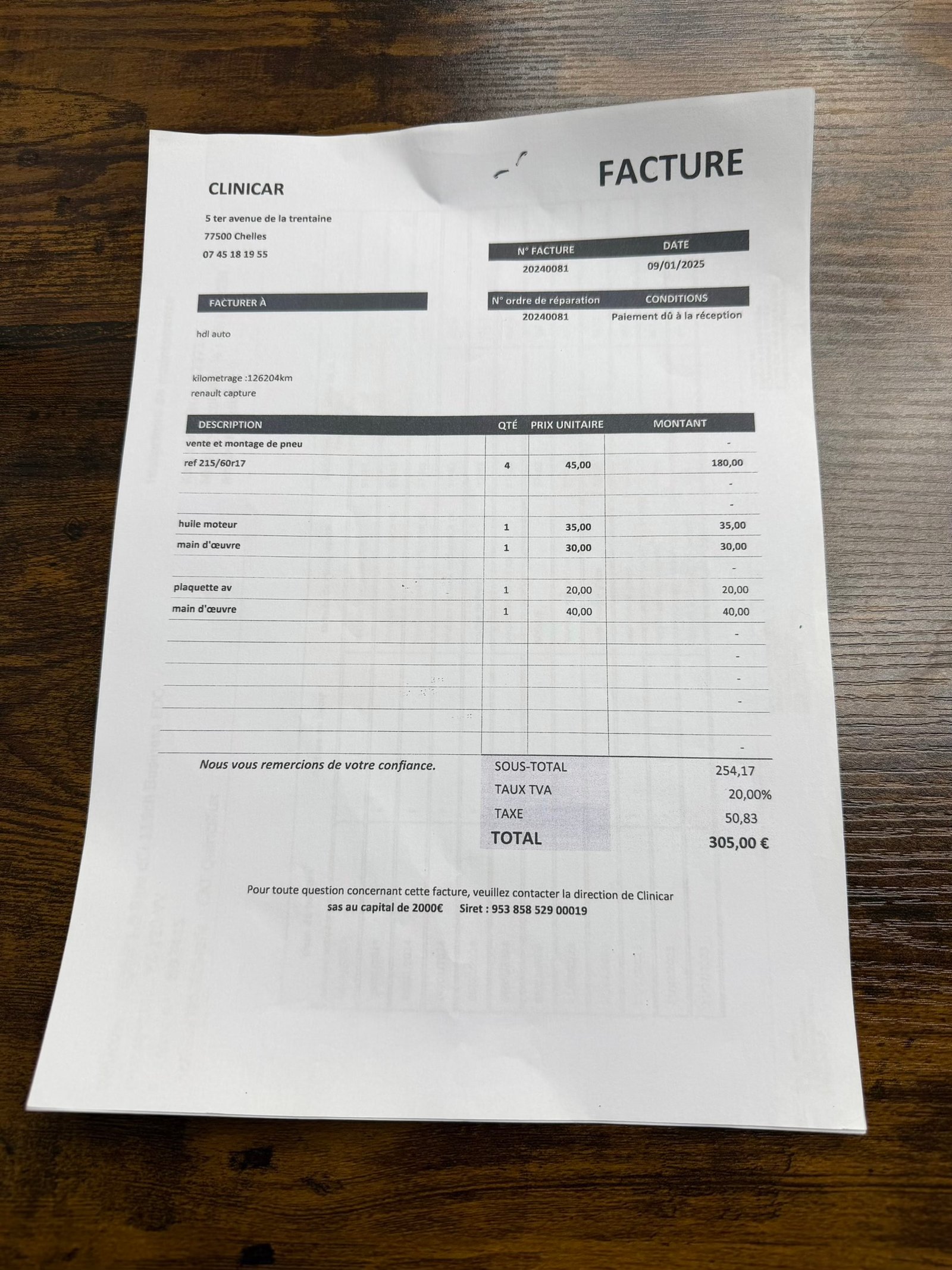 ✔️ Factures d’entretiens disponible