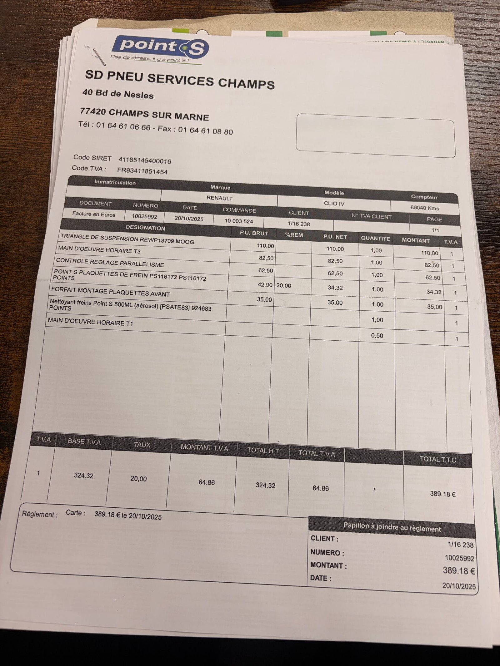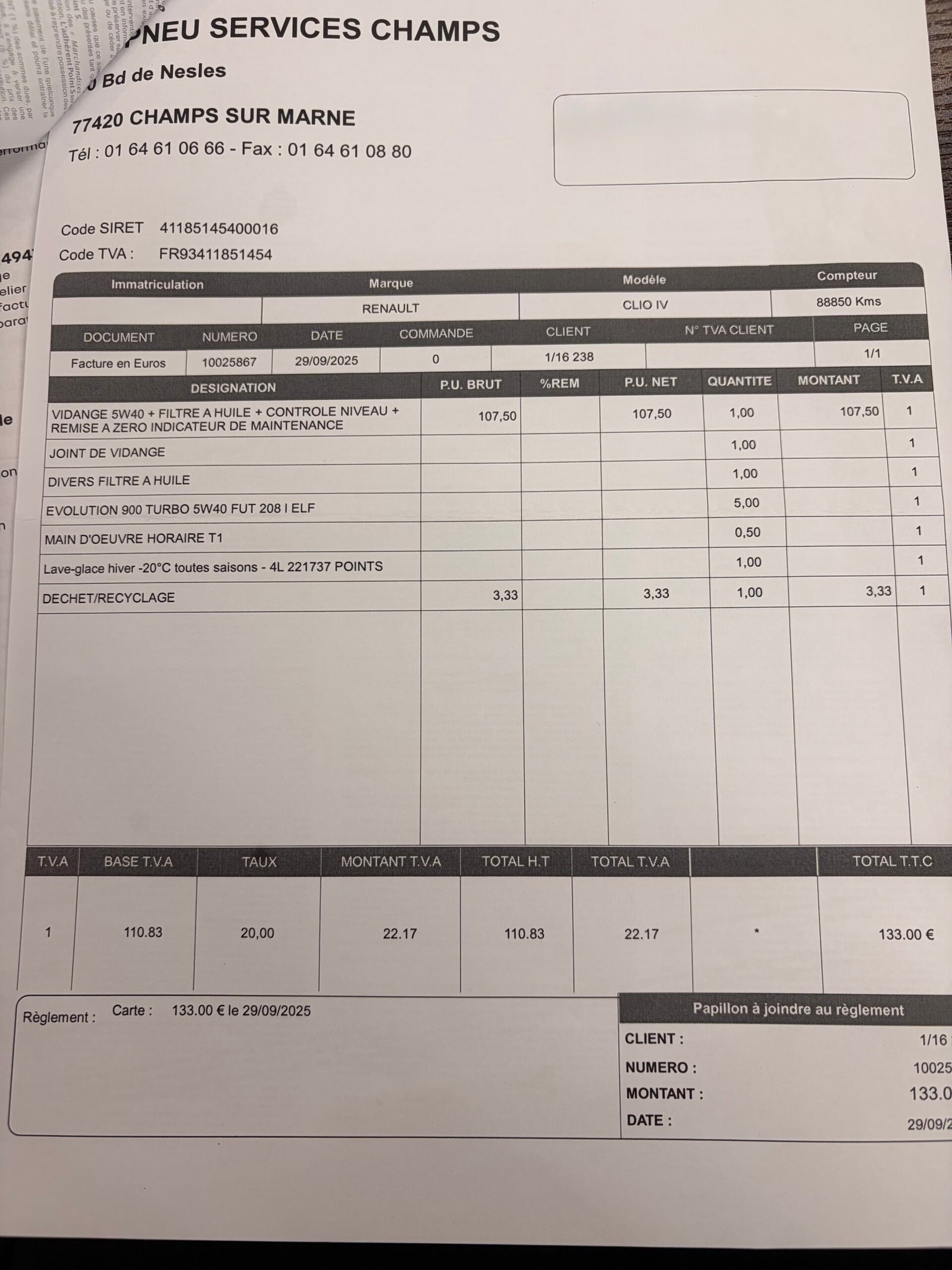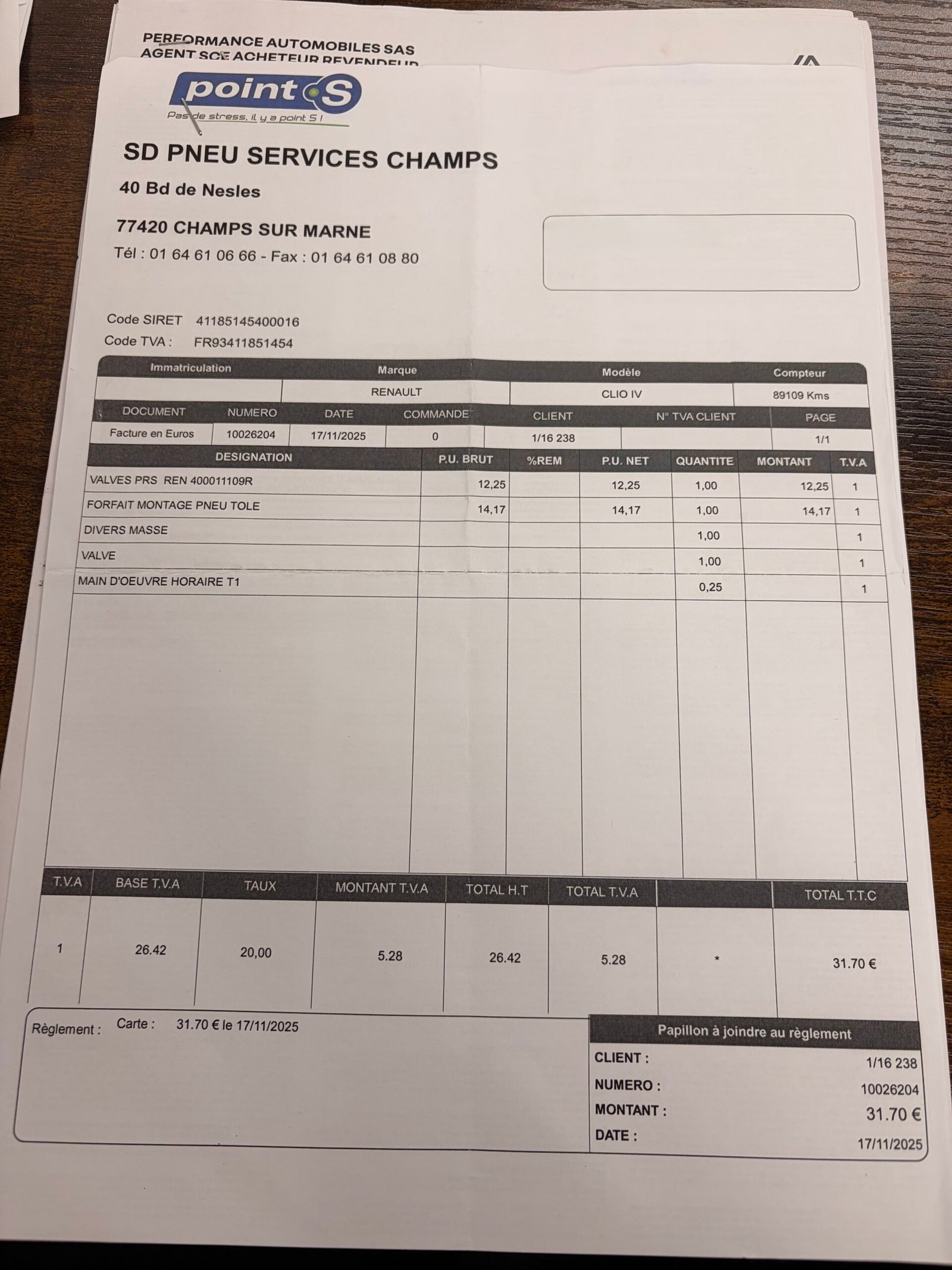 ✔️ Réalisé chez SD PNEU SERVICES CHAMPS le 29/09/2025