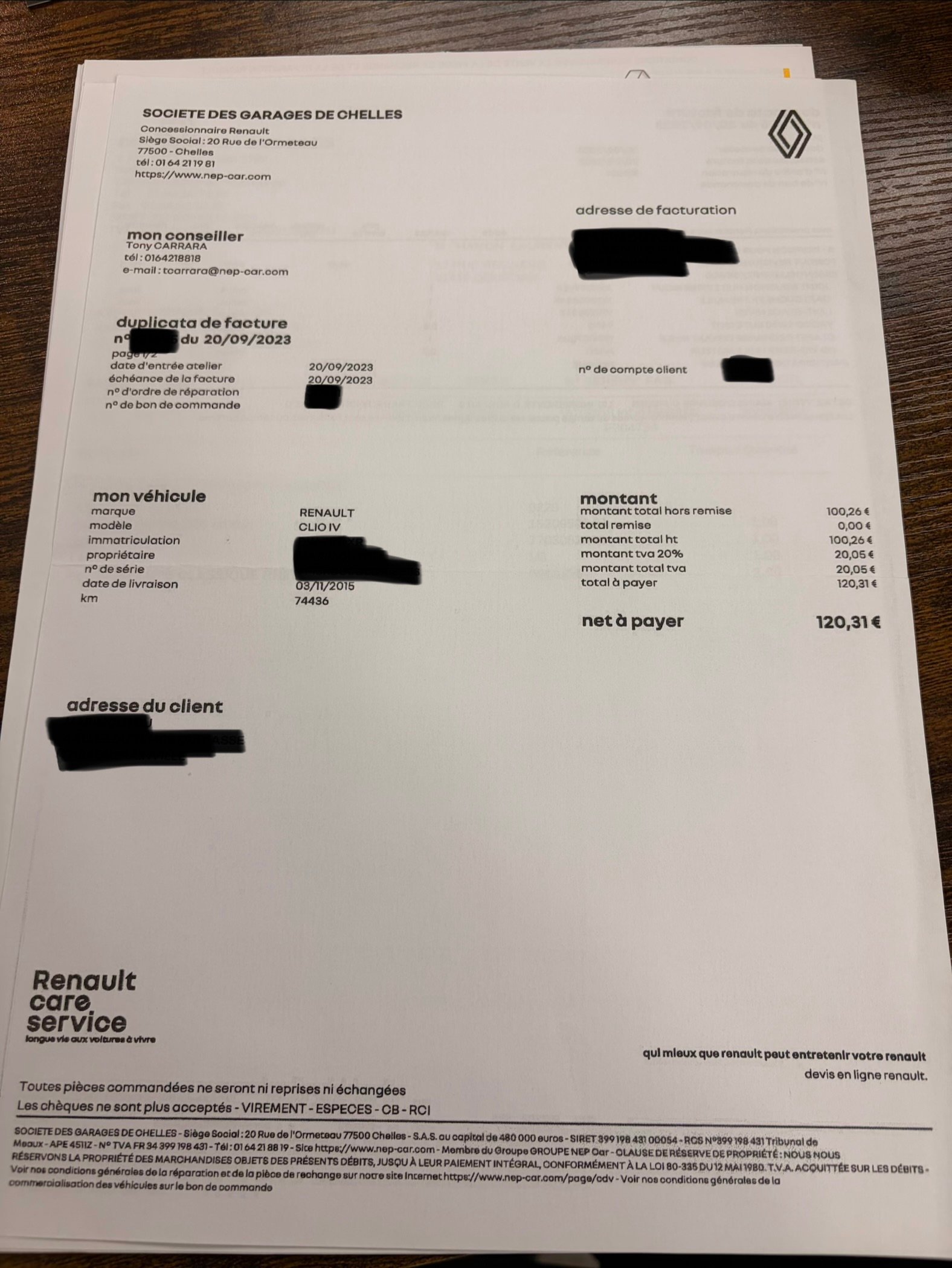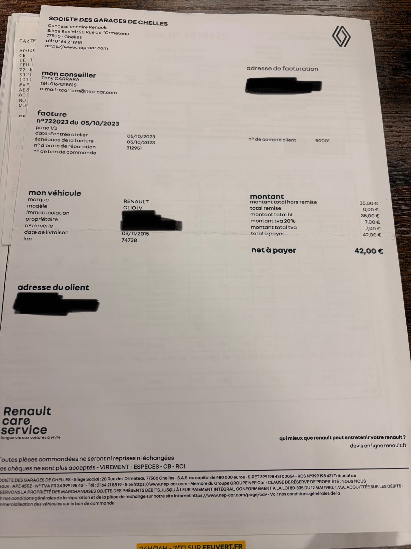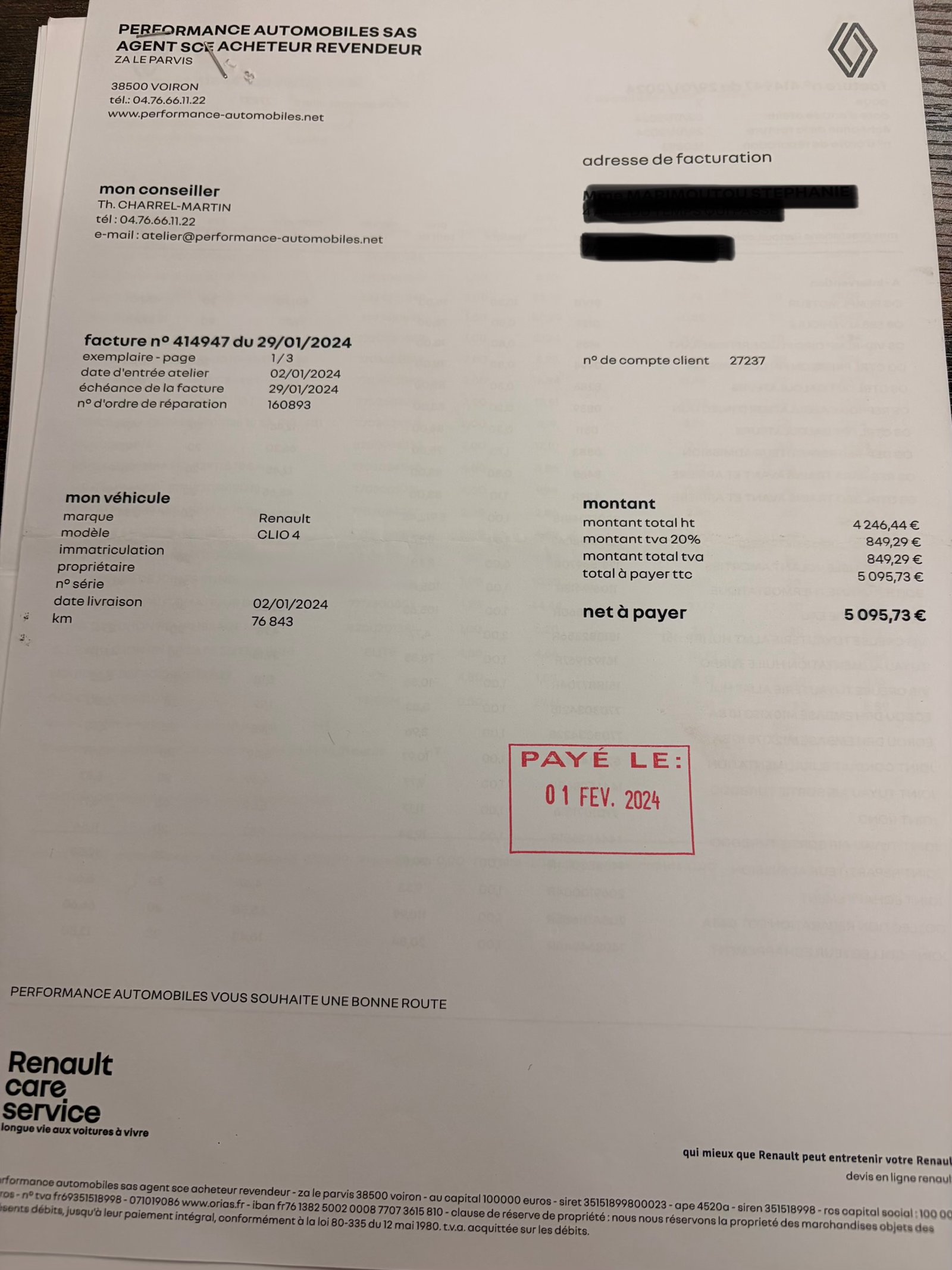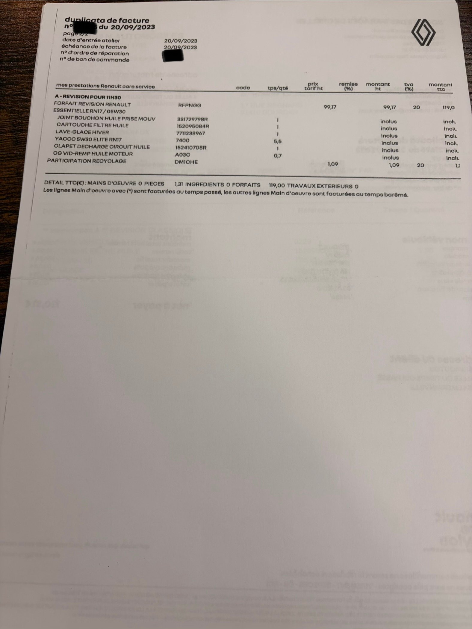 ✔️ Factures d’entretiens et dernière révisions effectuées le 29/09/2025