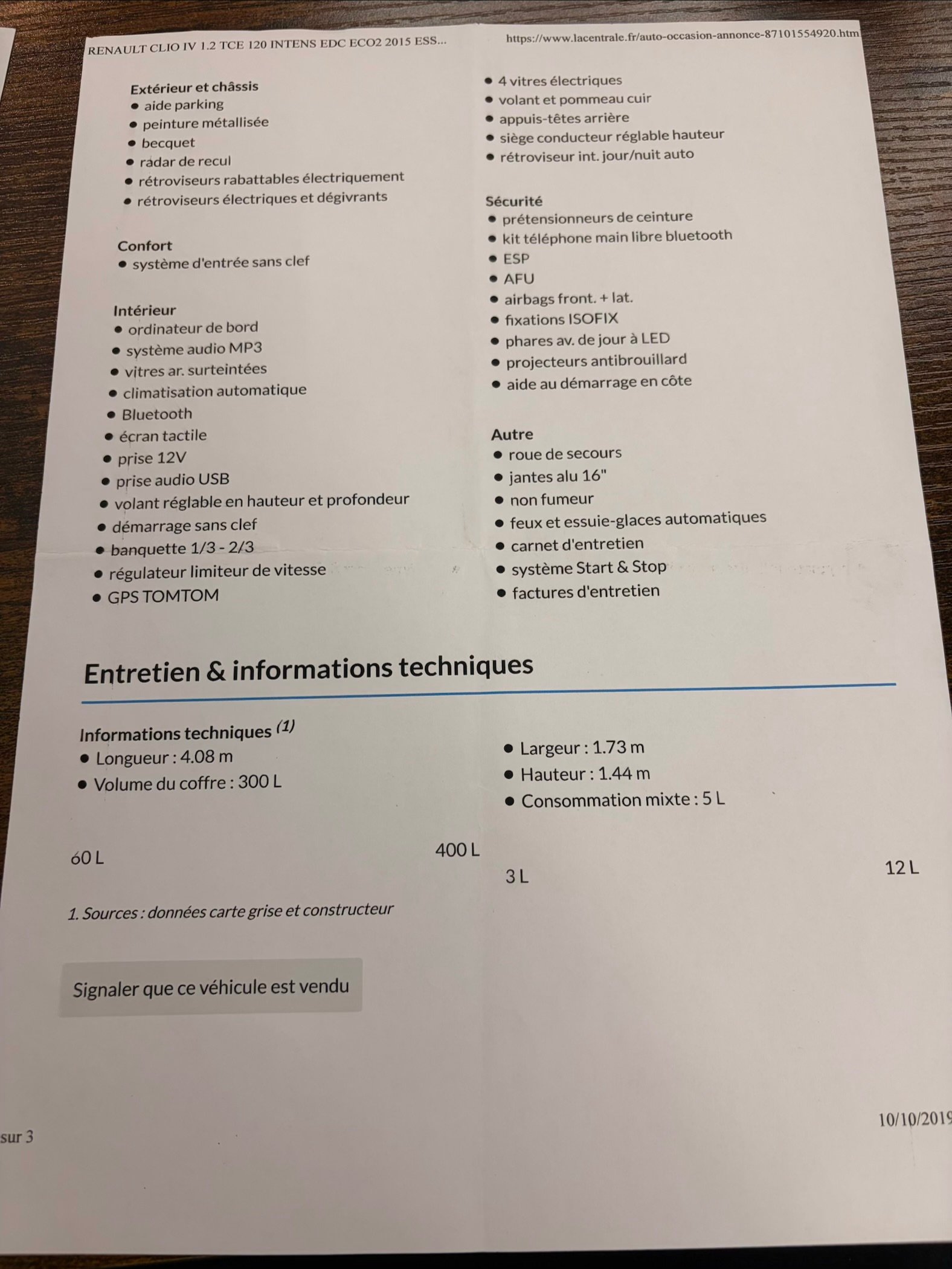 • Véhicule 100 % Français, carnet d’entretien et factures disponibles.