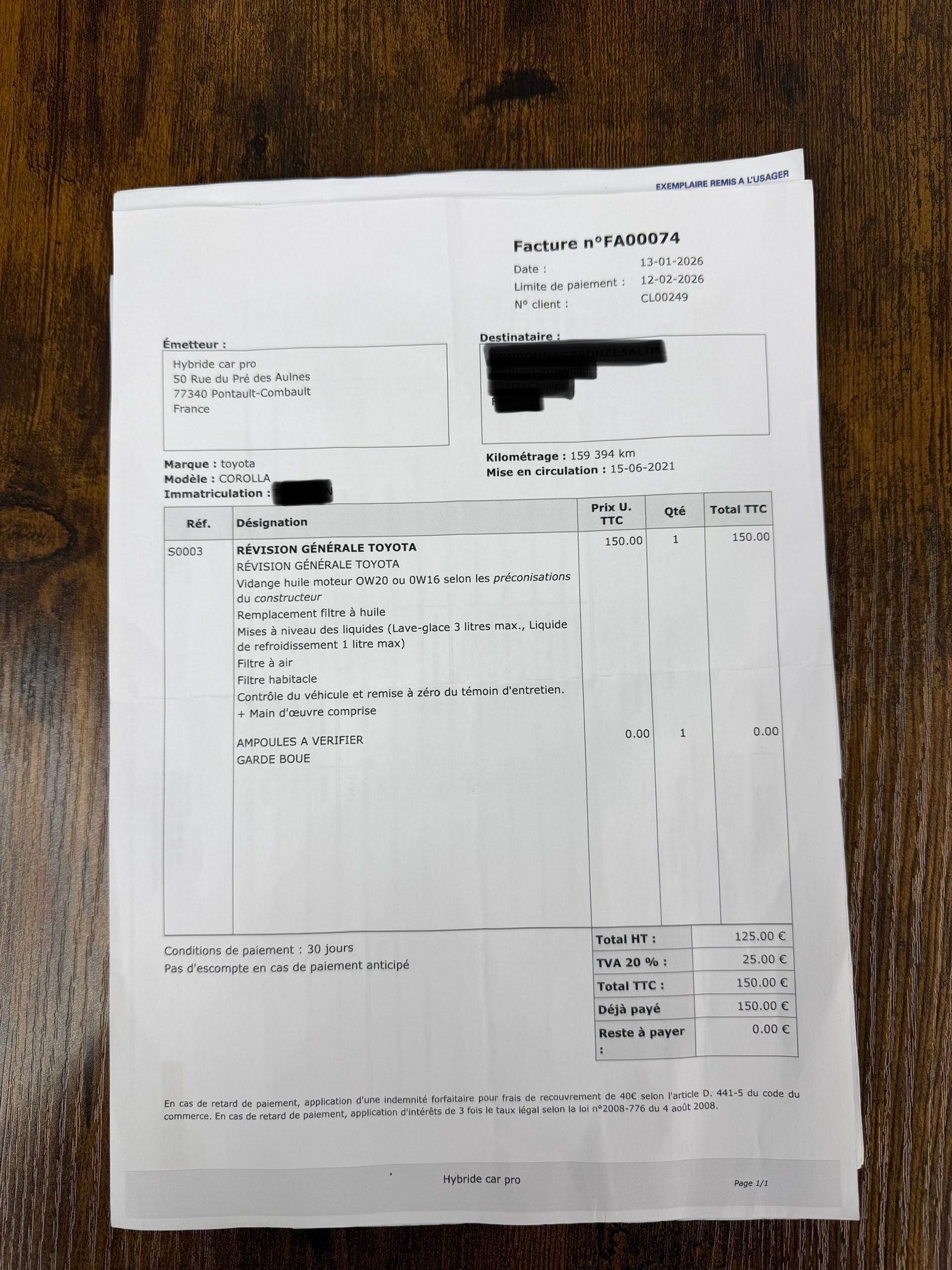 ✔️ Réalisé chez Hybride car pro le 13/01/2026
