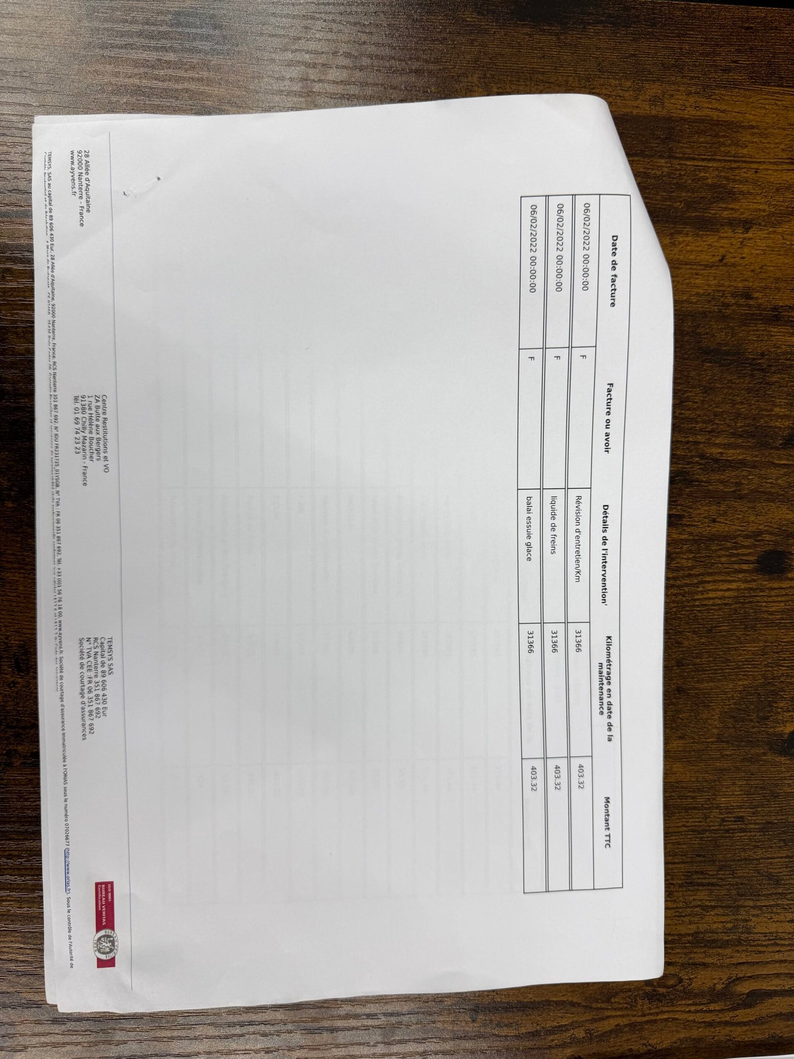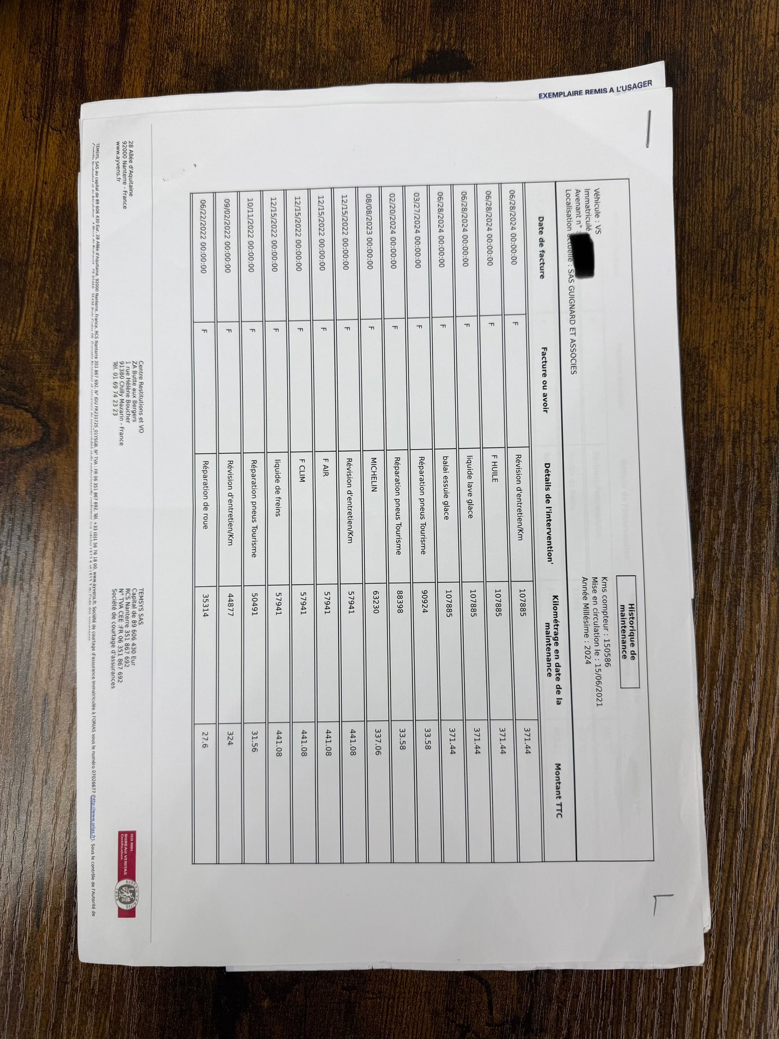 🛠️ Dernier entretien :