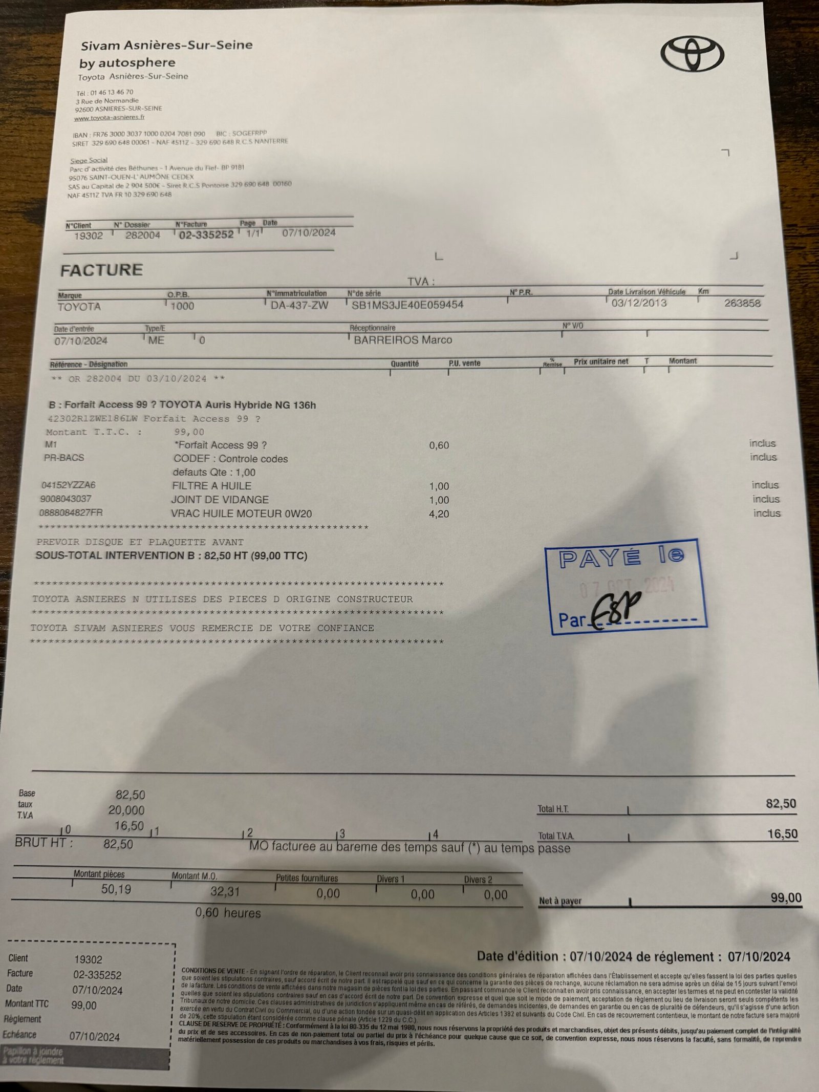 carnet d’entretien et factures disponibles.