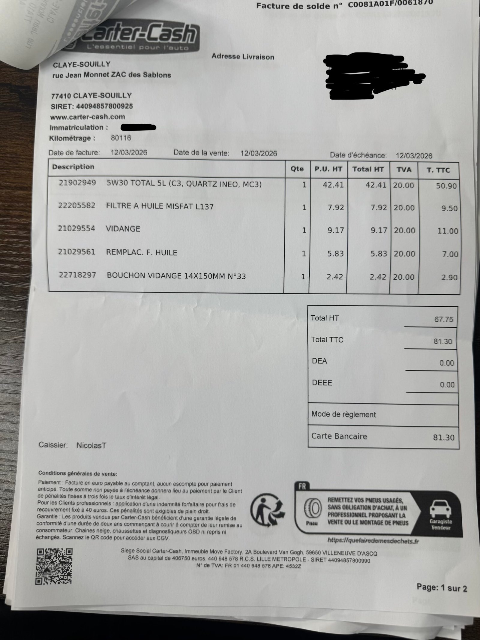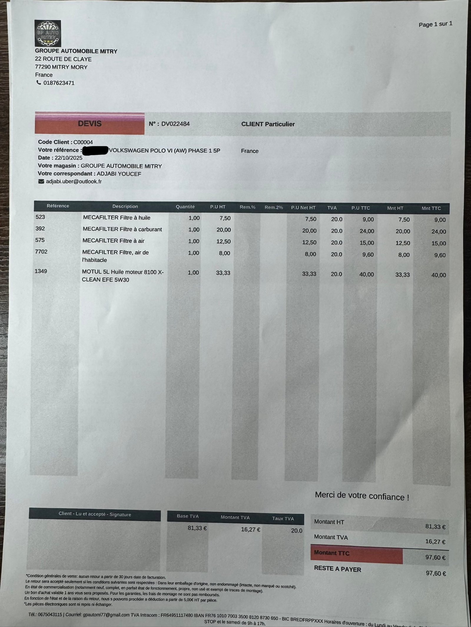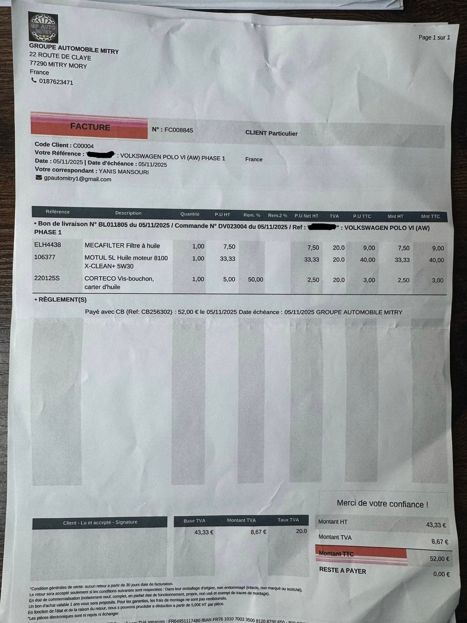 ✔️ Factures d’entretiens disponibles