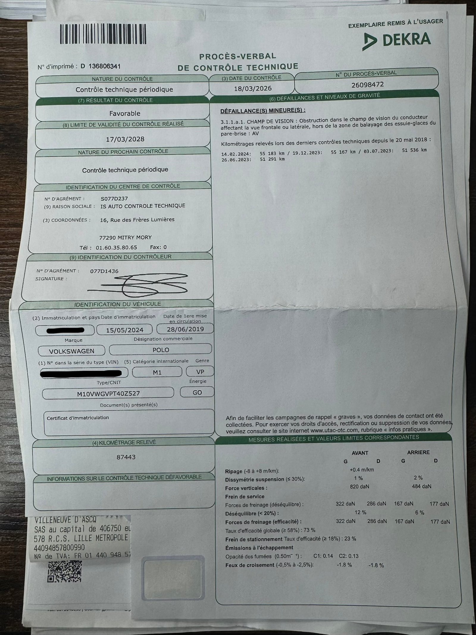 🛠️ Dernier entretien :